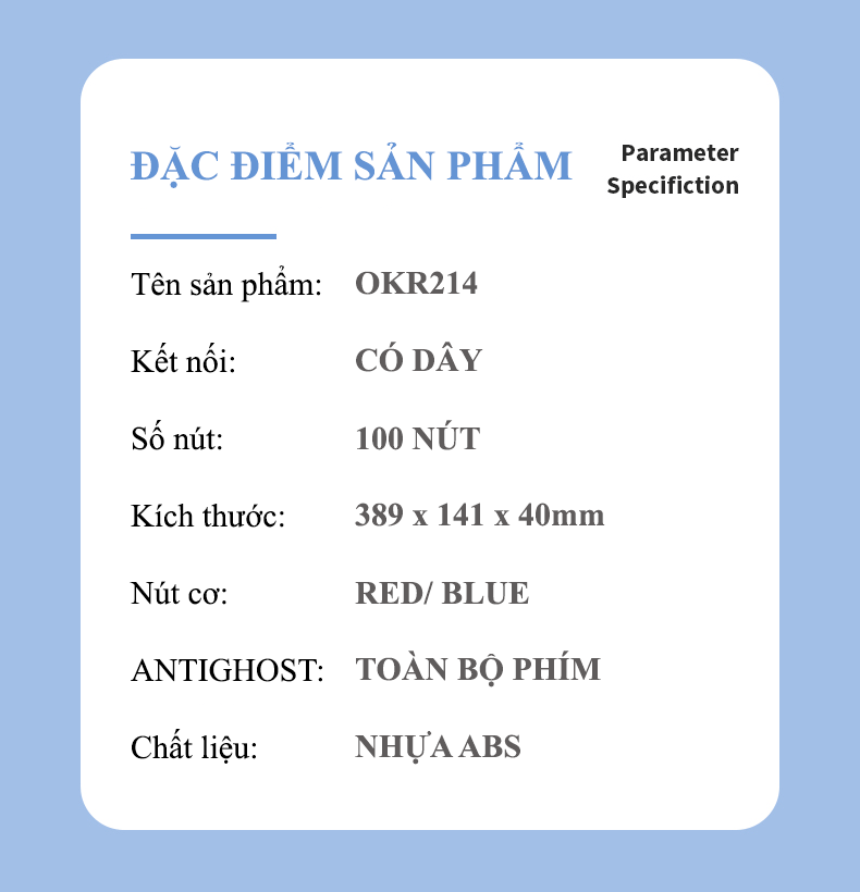- Chất liệu phím nhựa ABS Double-shot không tróc sơn theo thời gian.