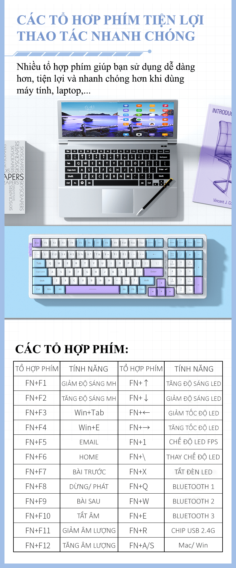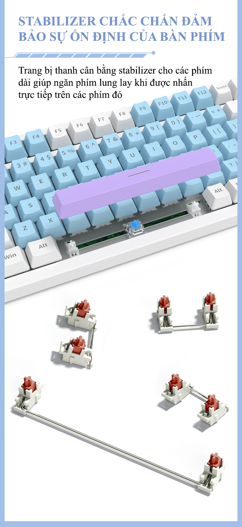 - Keycap tháo lắp dễ dàng thuận tiện cho việc vệ sinh và custom phím