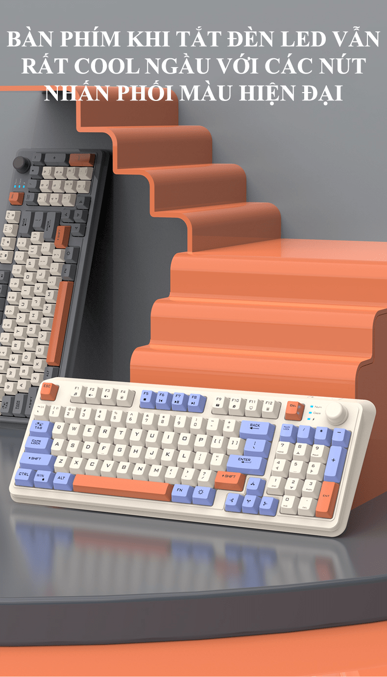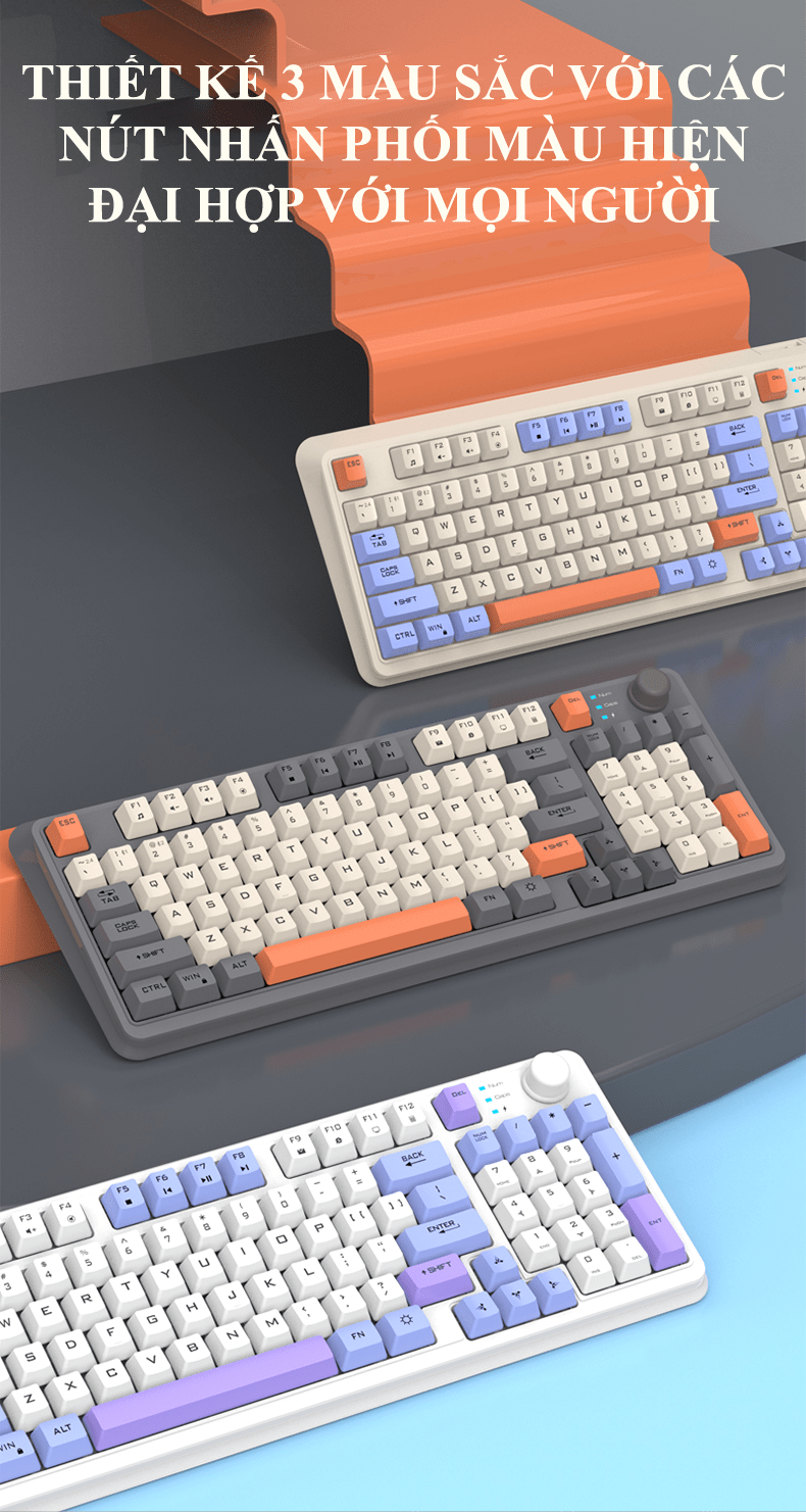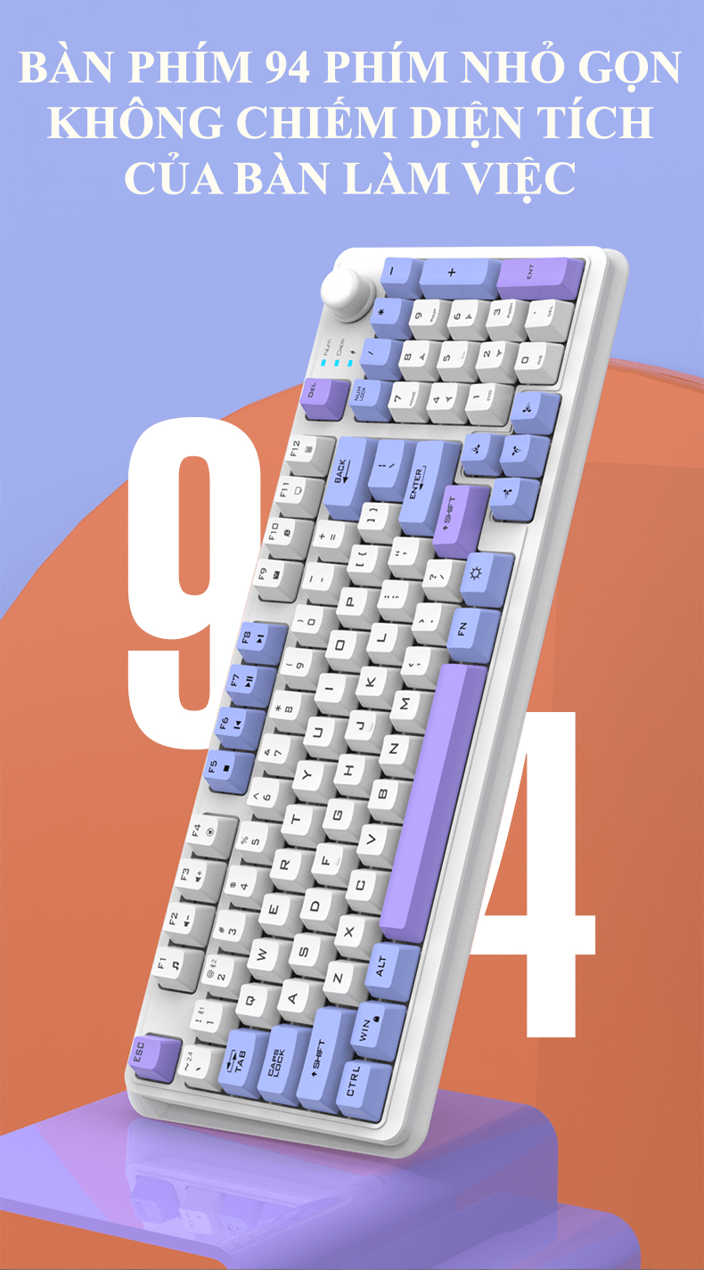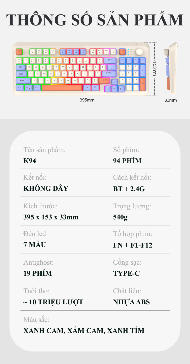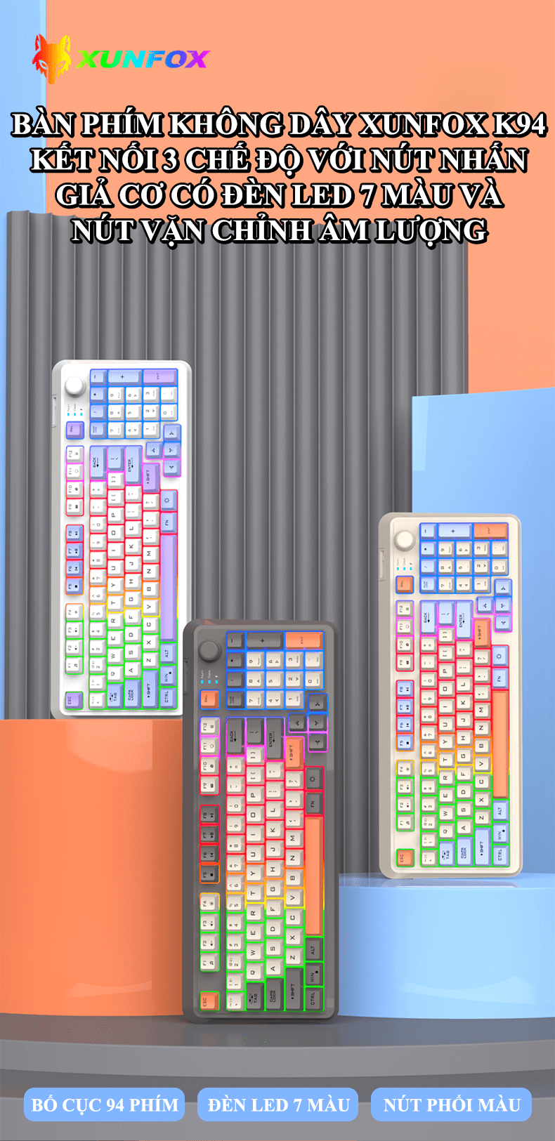 Bàn phím giả cơ không dây XUNFOX K94 kết nối 3 chế độ Bluetooth và USB 2.4G bố cục 94 phím có đèn led 7 màu cực đẹp