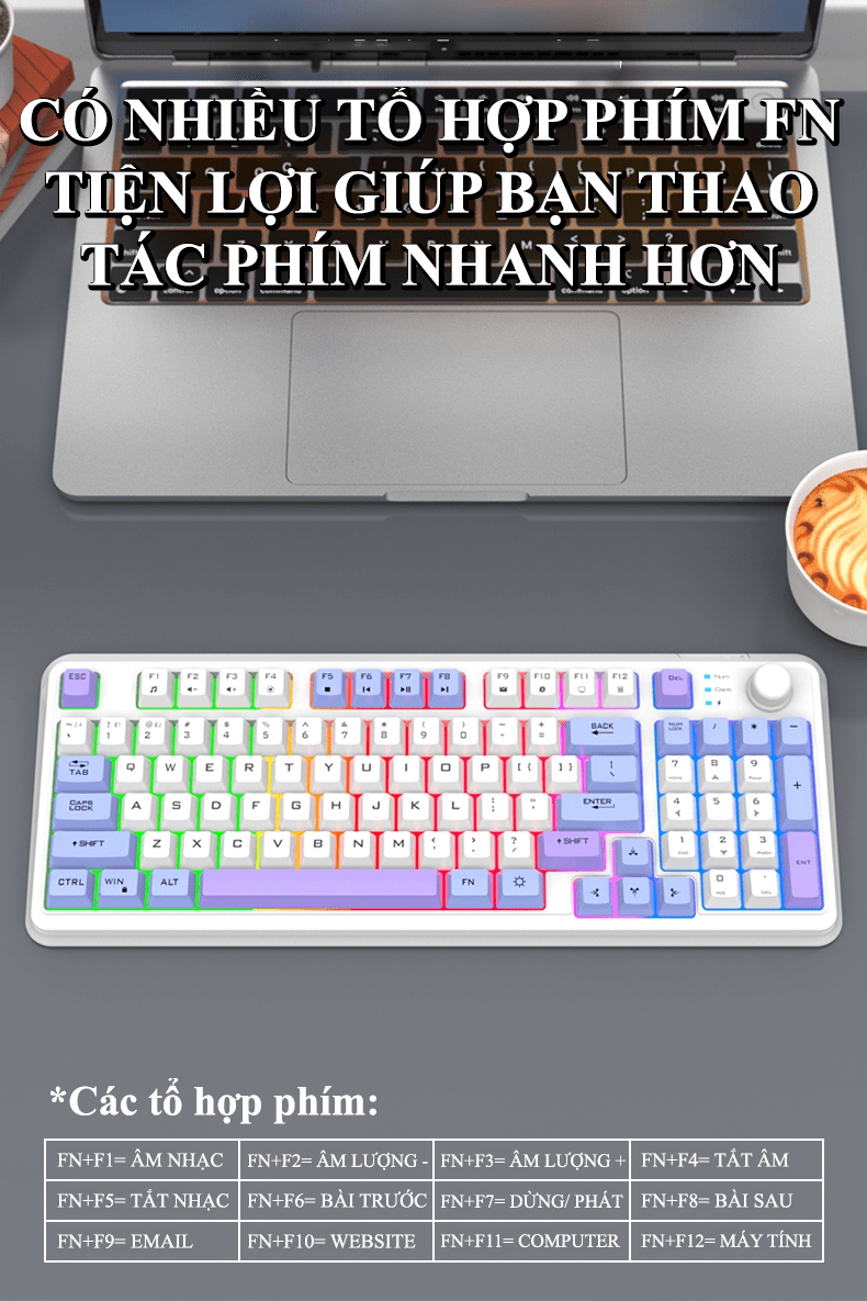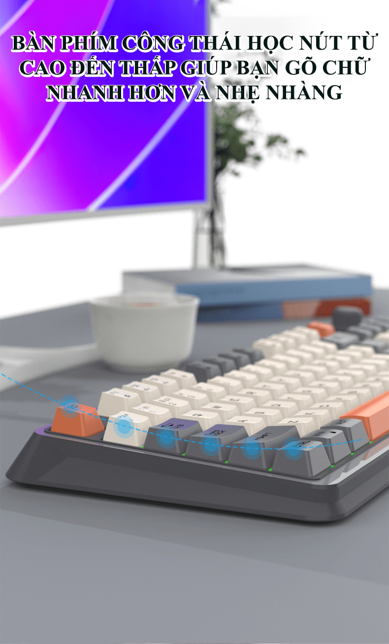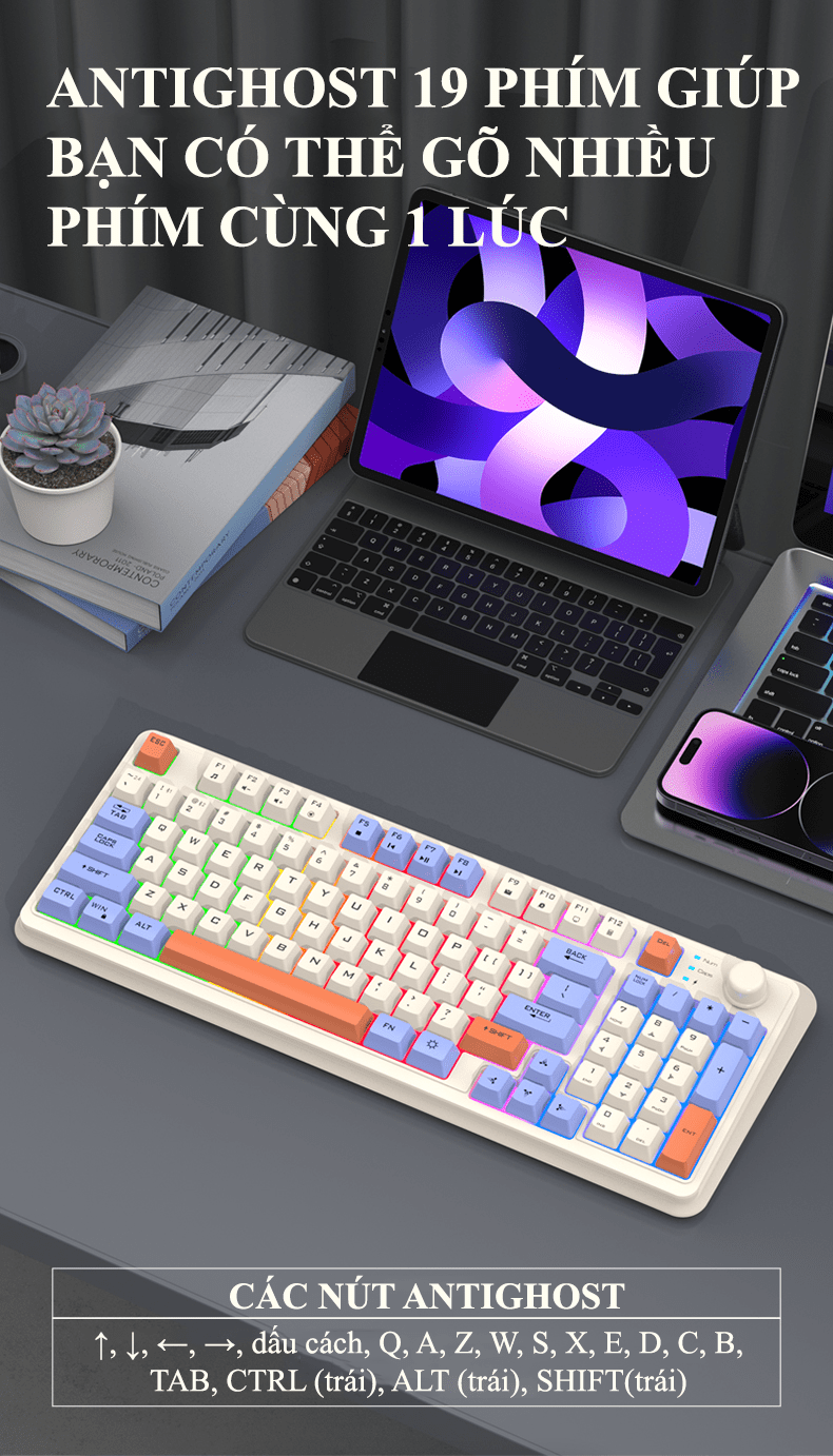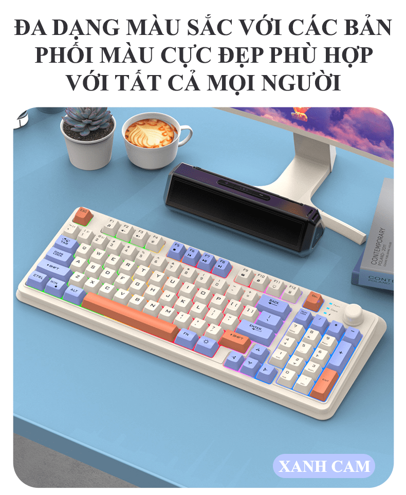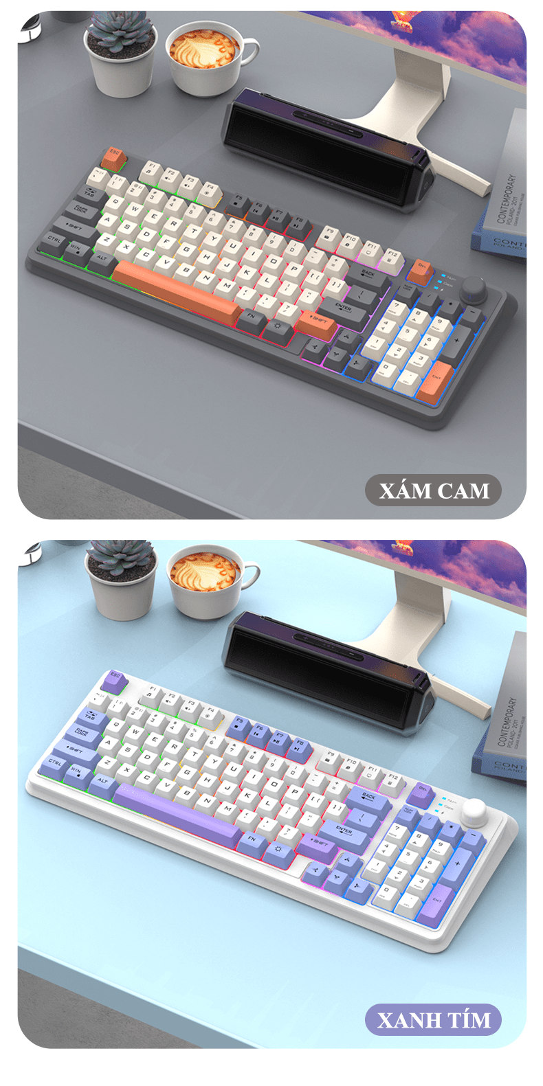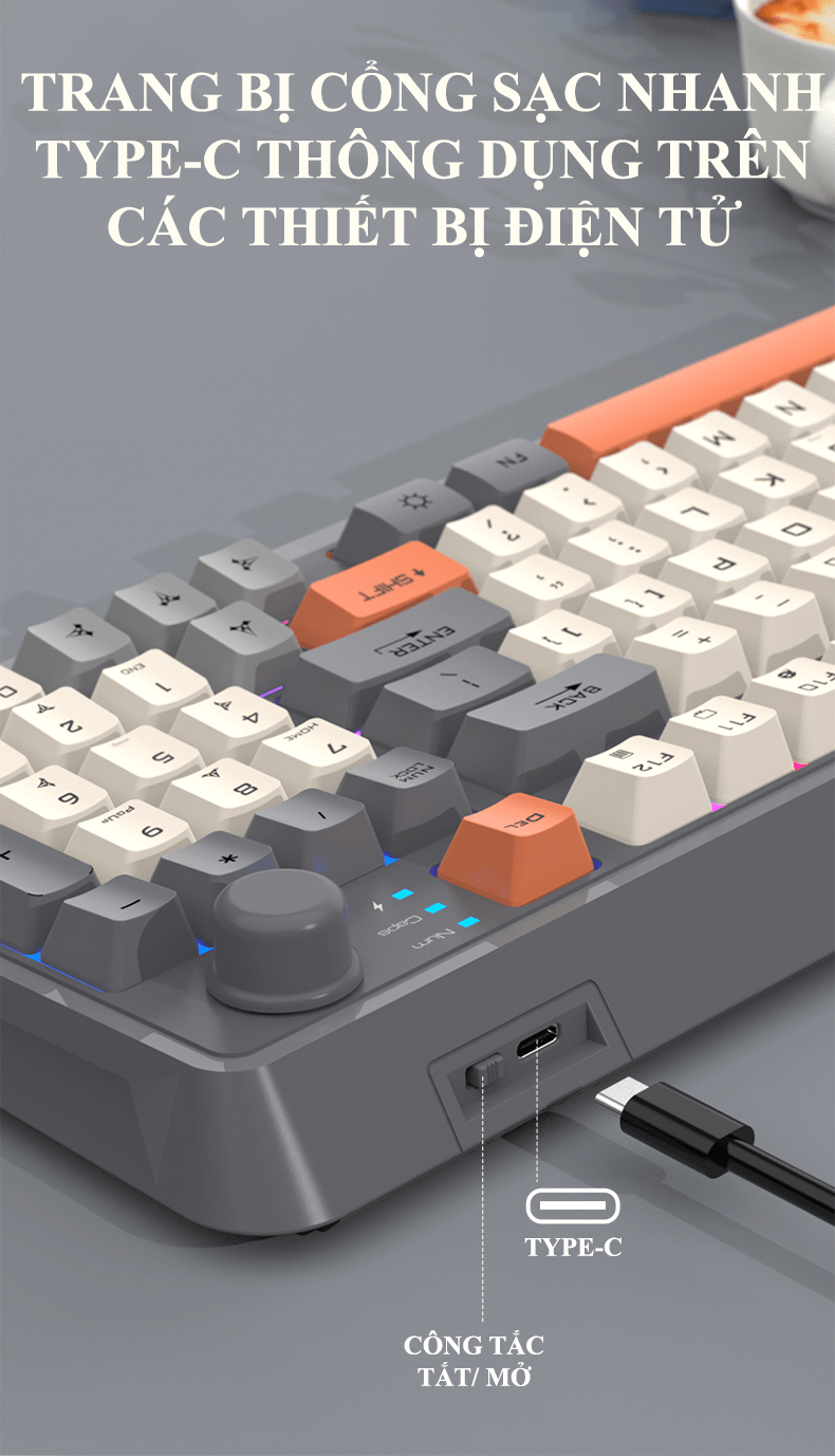 Bàn phím giả cơ không dây XUNFOX K94 kết nối 3 chế độ Bluetooth và USB 2.4G bố cục 94 phím có đèn led 7 màu cực đẹp