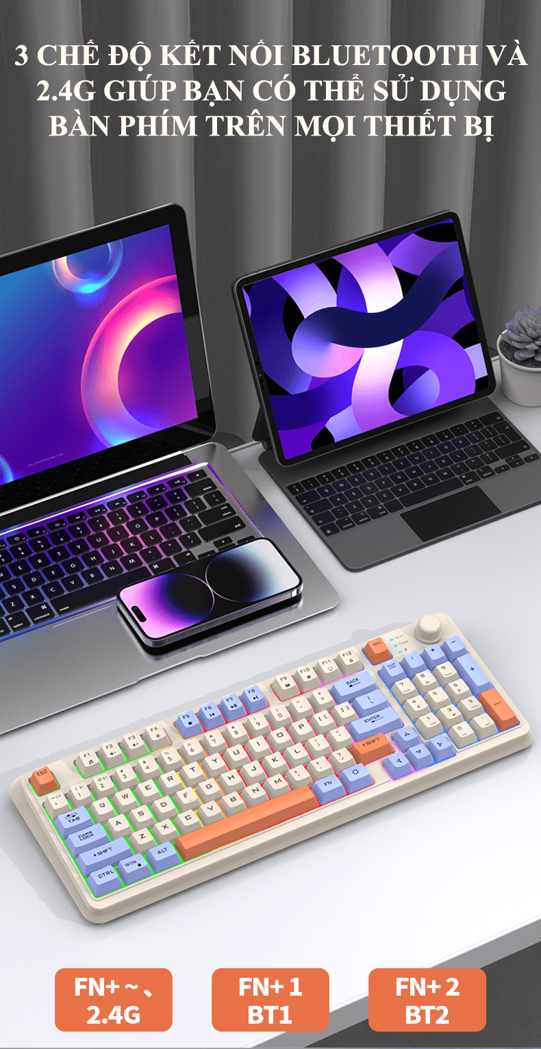 Kết nối không dây 3 chế độ Bluetooth 1, Bluetooth 2, USB 2.4G