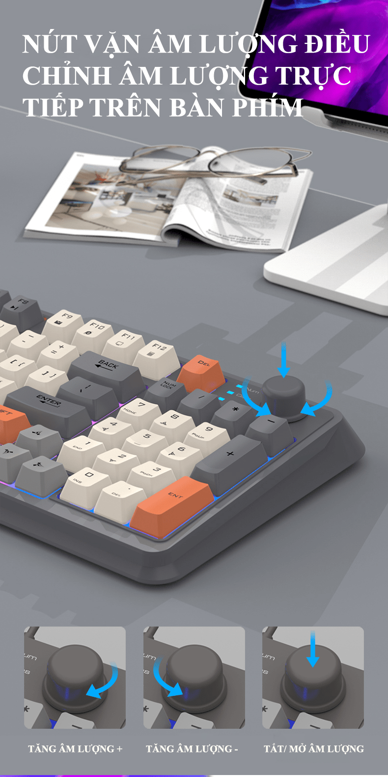Nút vặn âm lượng trên bàn phím vô cùng tiện lợi