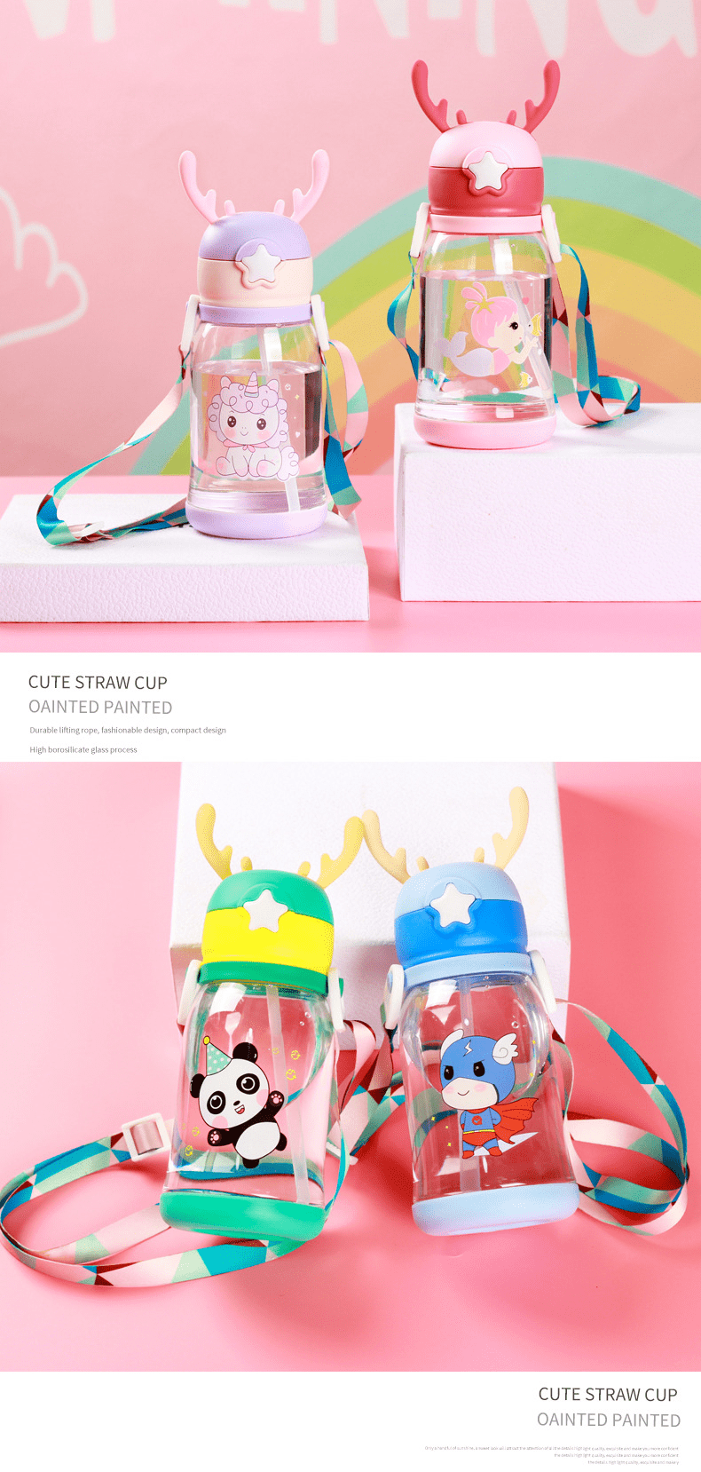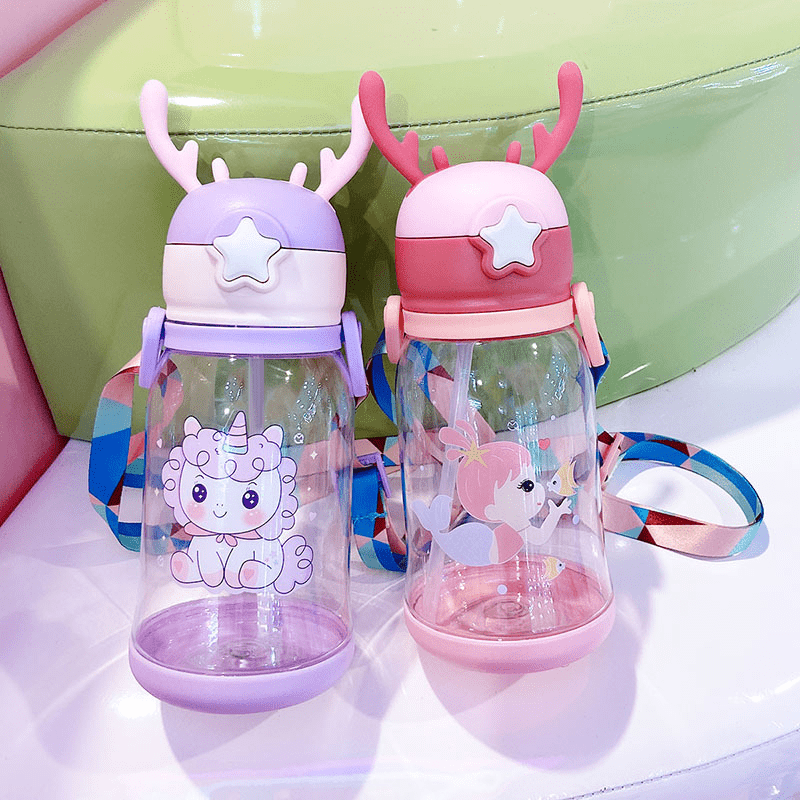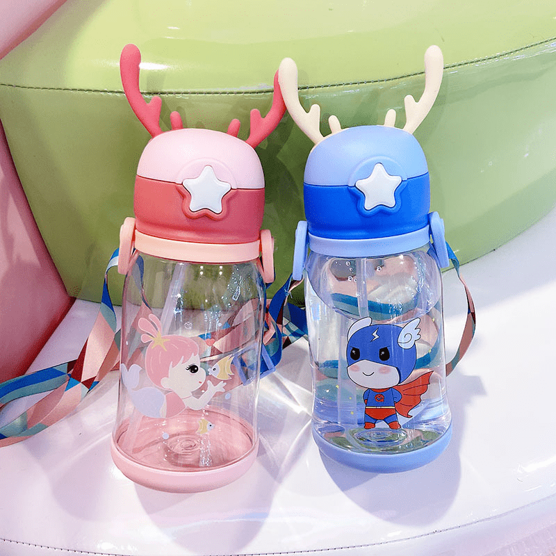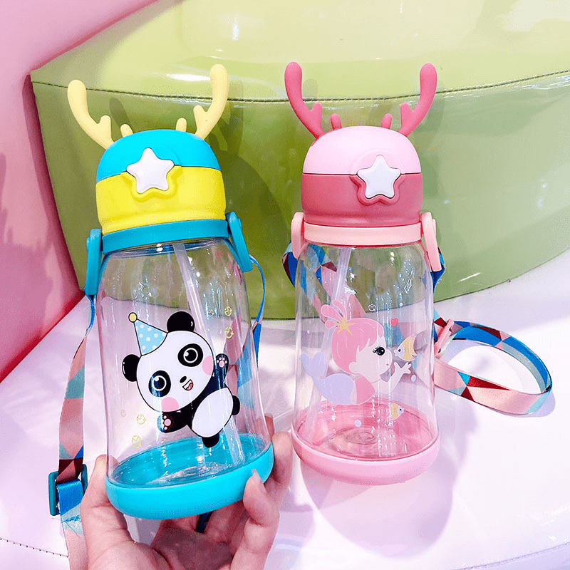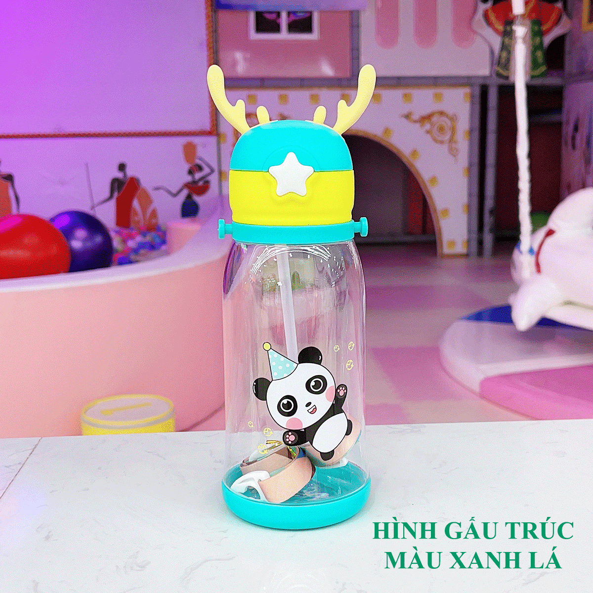 Bình uống nước có ống hút mềm dẻo cho bé dung tích lớn 600ml với thiết kế dễ thương phù hợp cho mọi bé trai bé gái