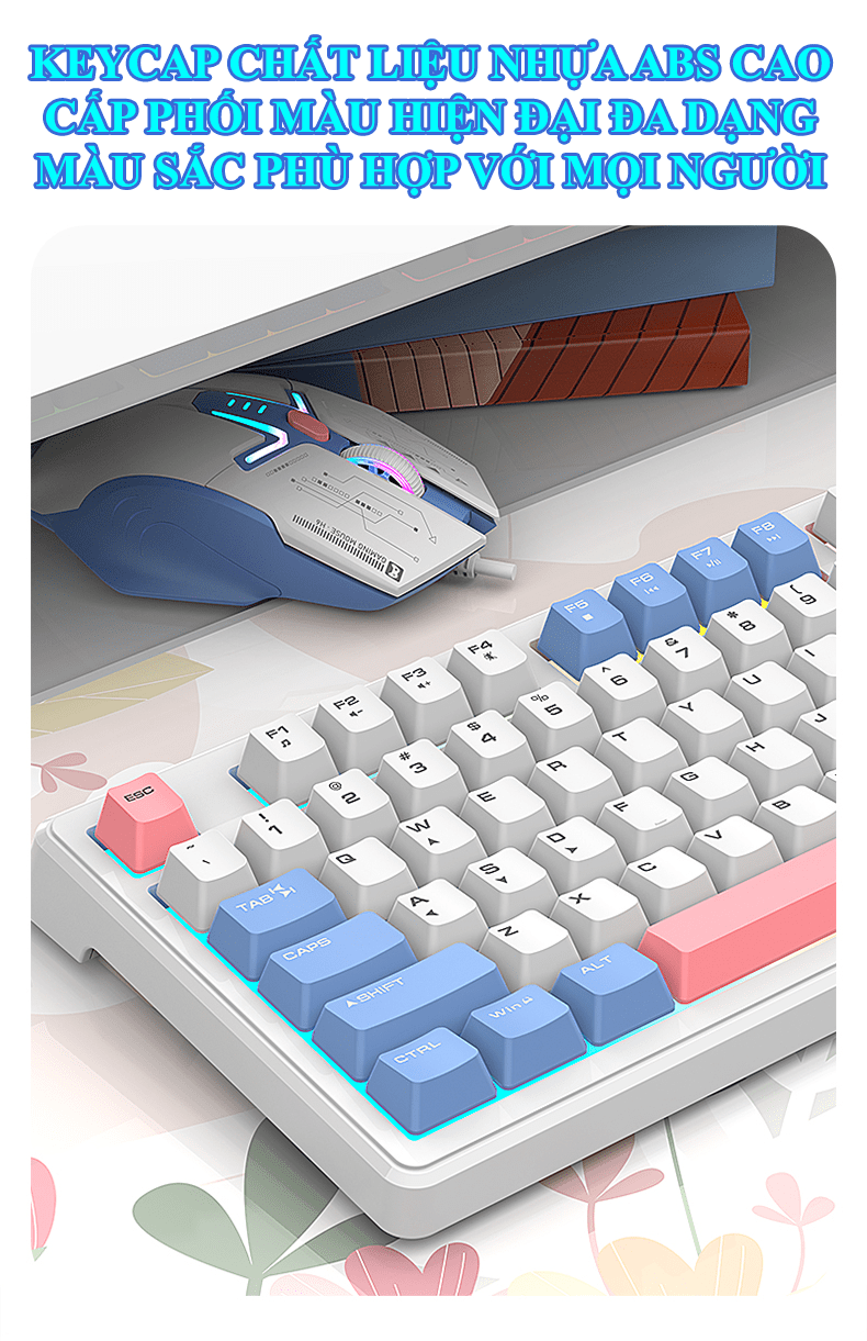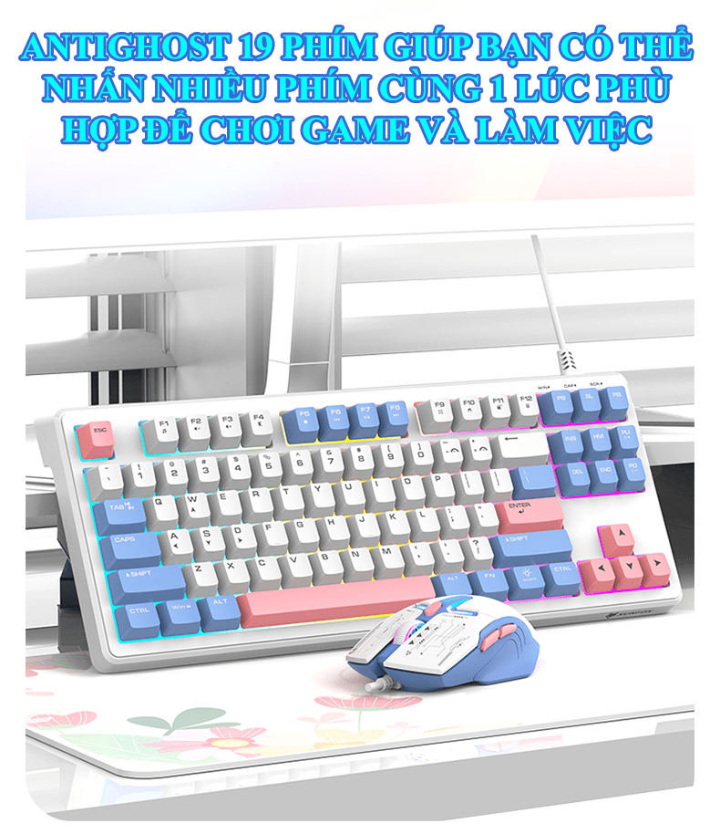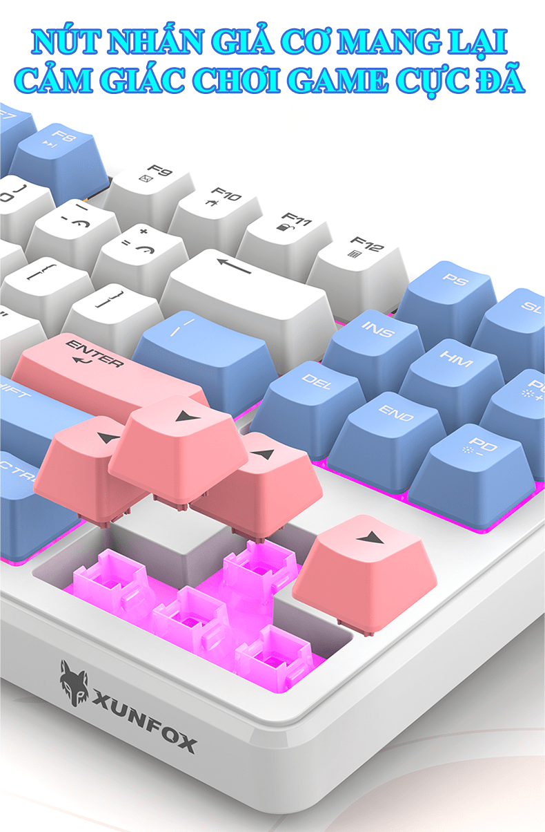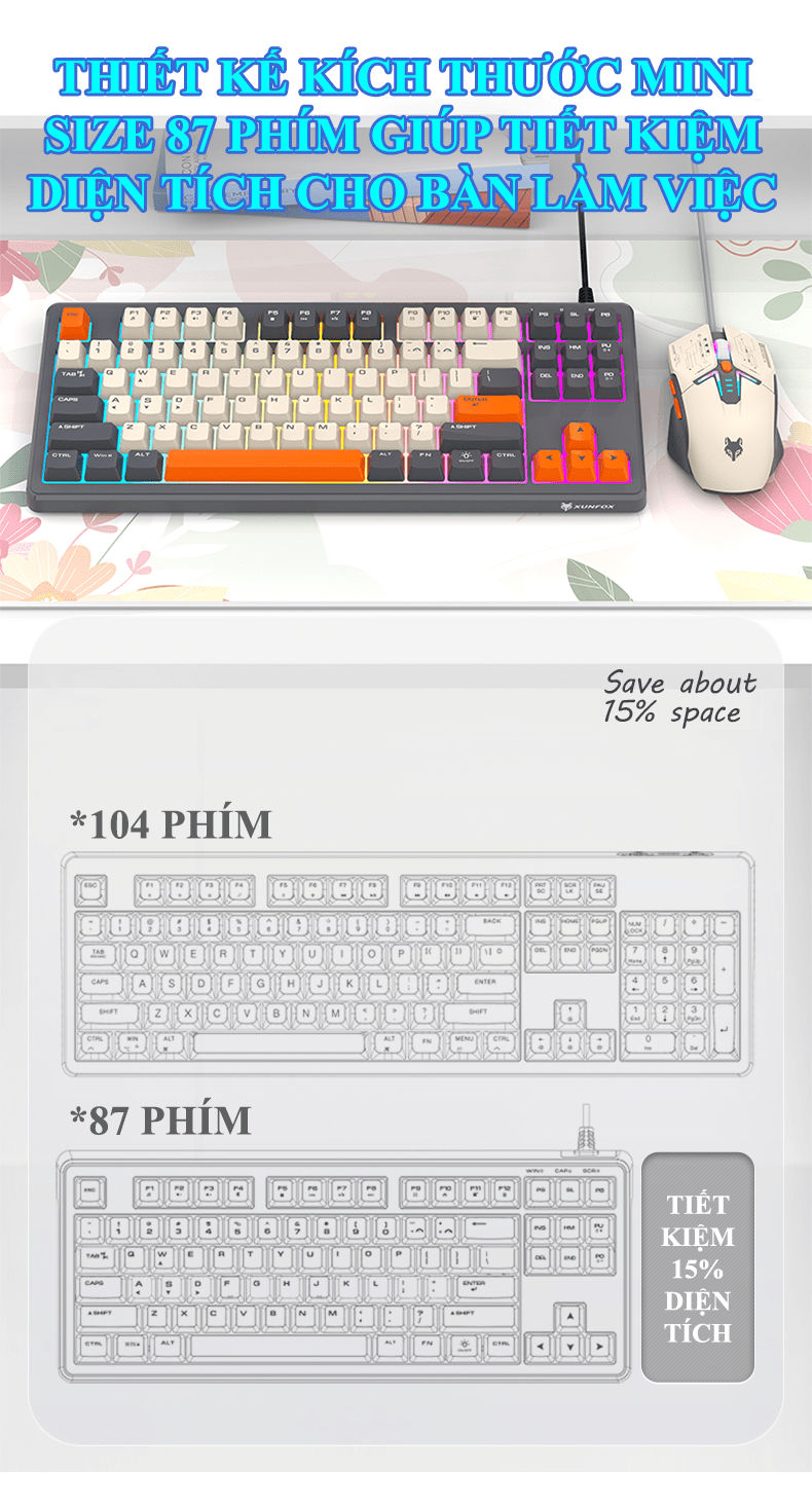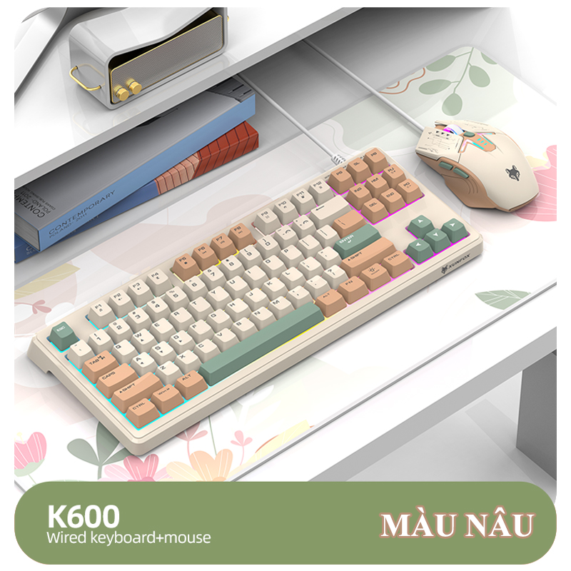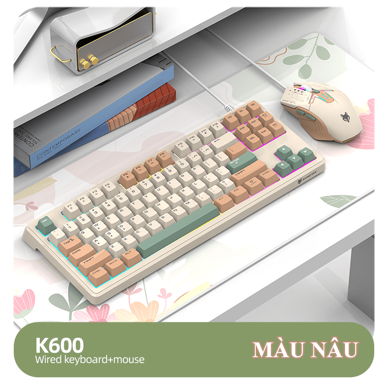 Bộ bàn phím và chuột có dây chơi game XUNFOX K600 thiết kế phím mini size 87 phím có đèn led 7 màu chớp nháy cực đẹp
