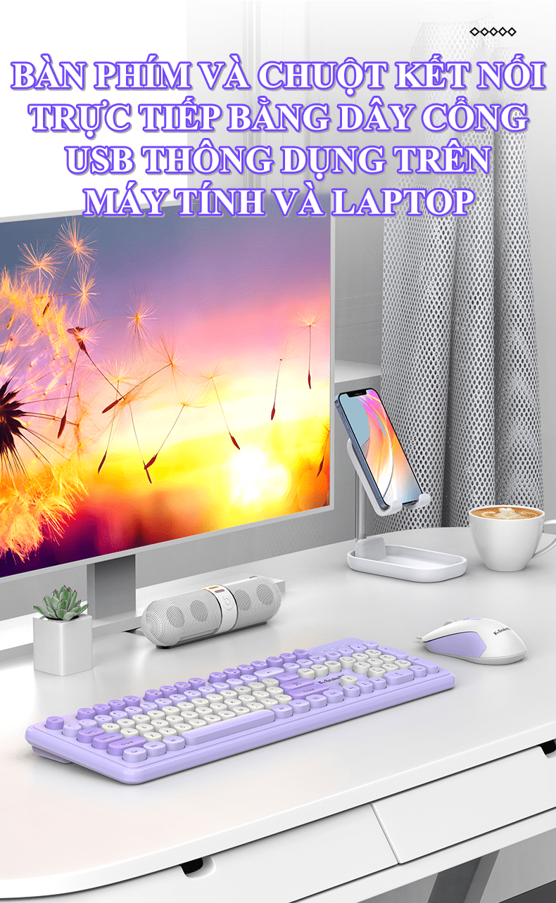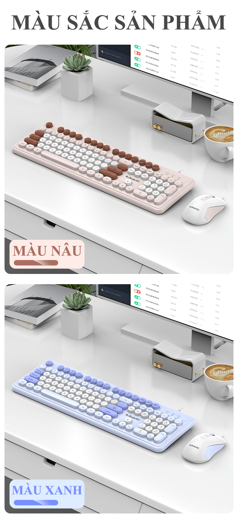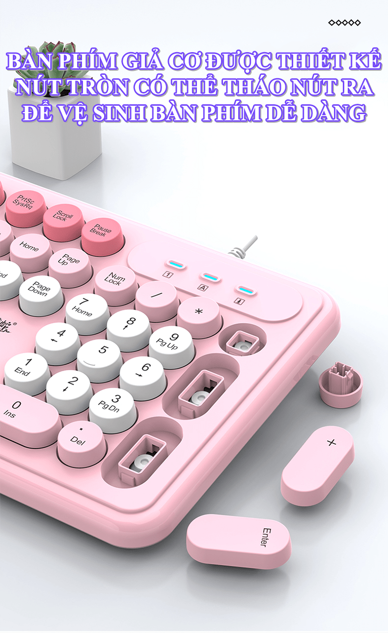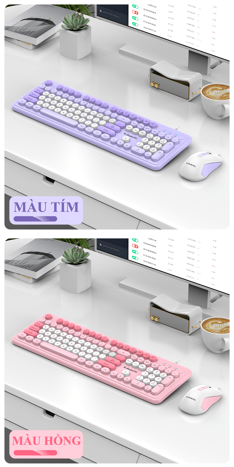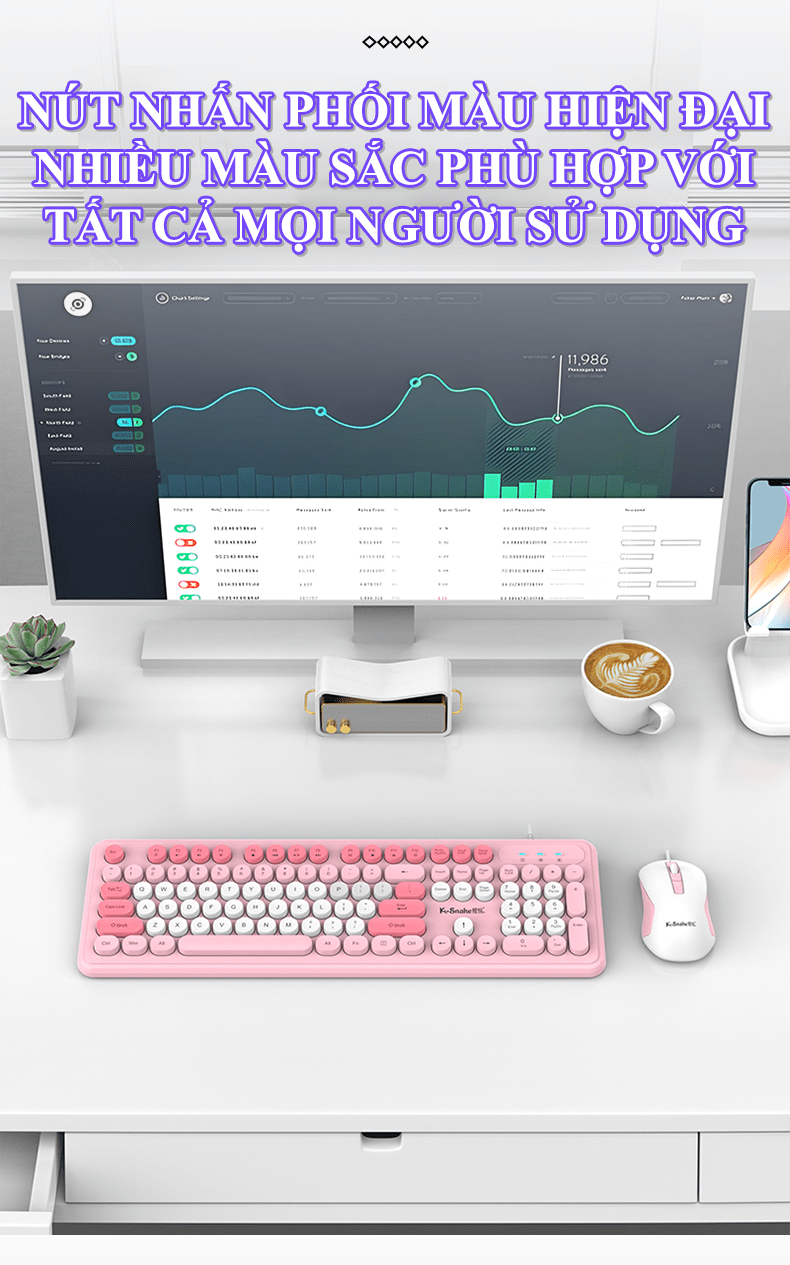 Bộ bàn phím và chuột K-SNAKE KM200 kết nối bằng dây cổng USB thiết kế nút tròn fullsize 104 phím đa dạng màu sắc