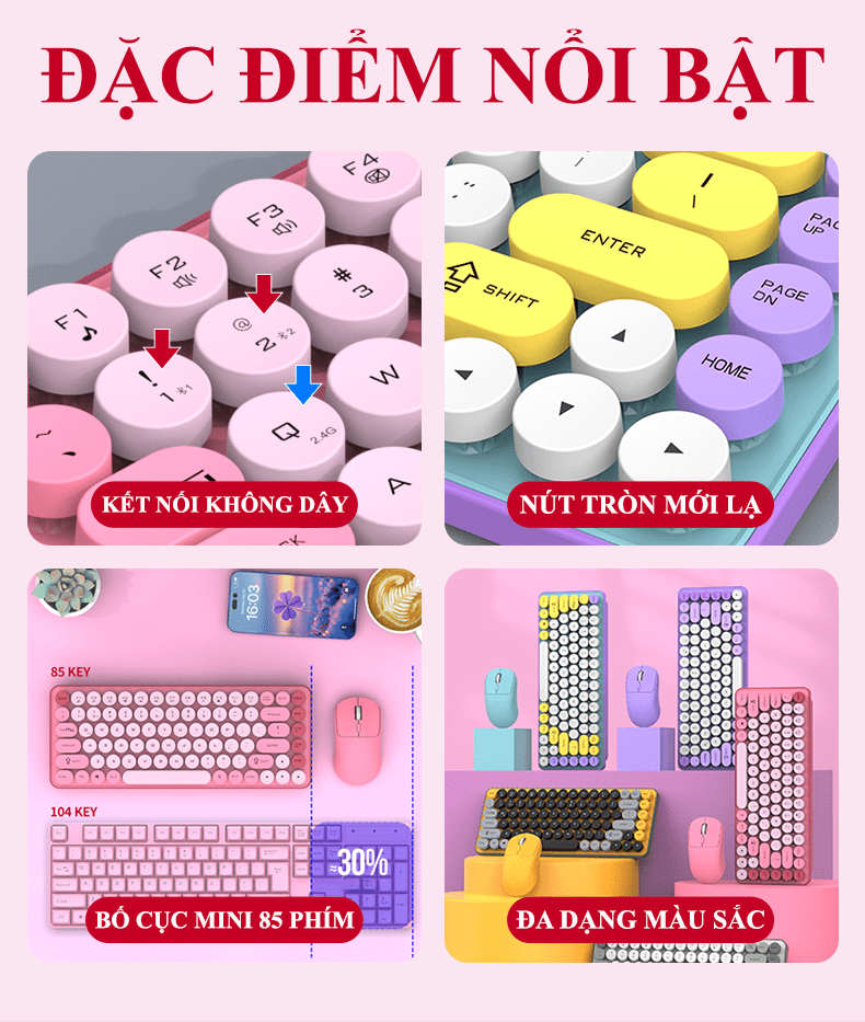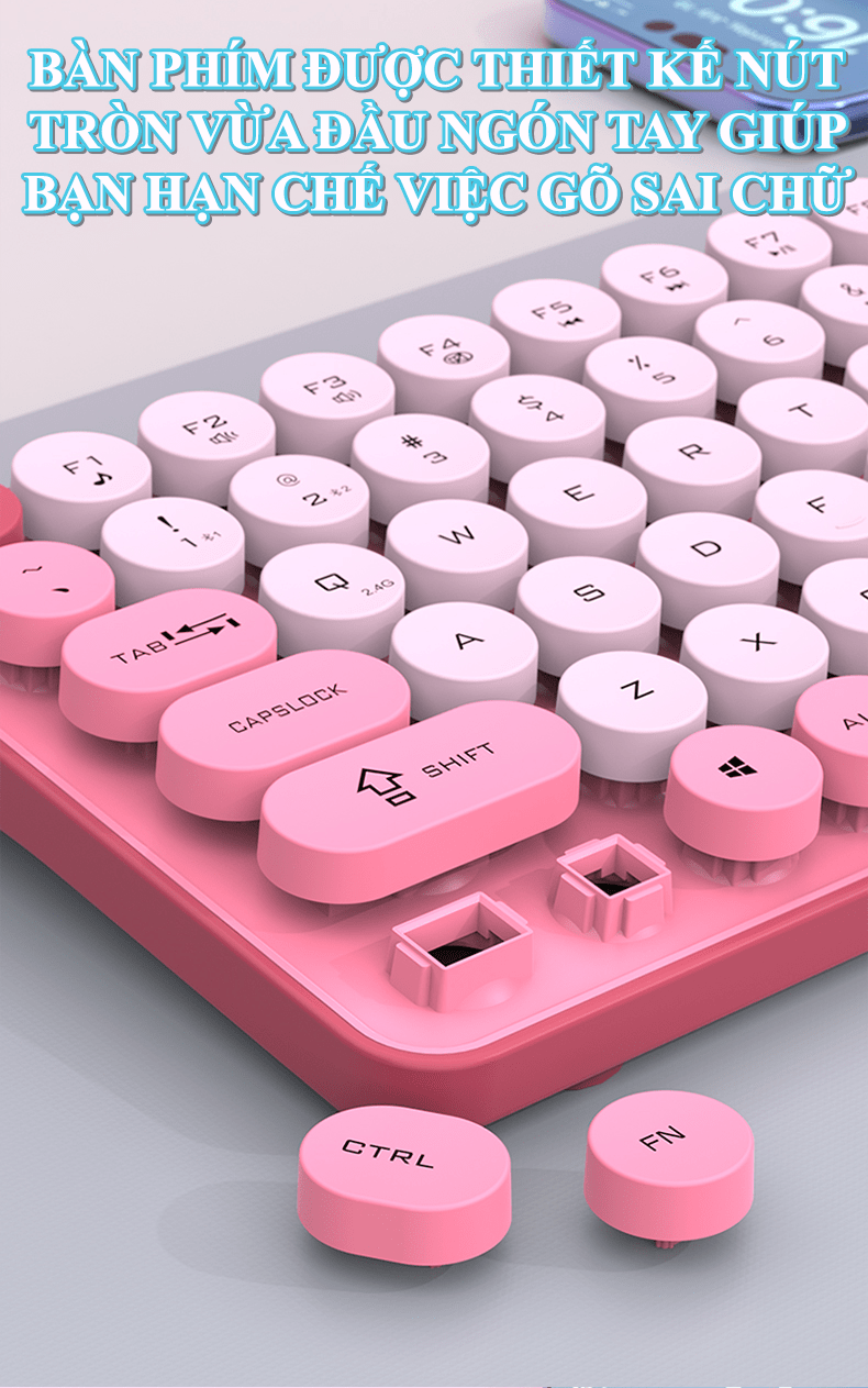 - Nút tròn (Round Keycaps): Các phím có hình tròn độc đáo, tạo điểm nhấn khác biệt so với các bàn phím thông thường, mang lại cảm giác mới lạ và đáng yêu.