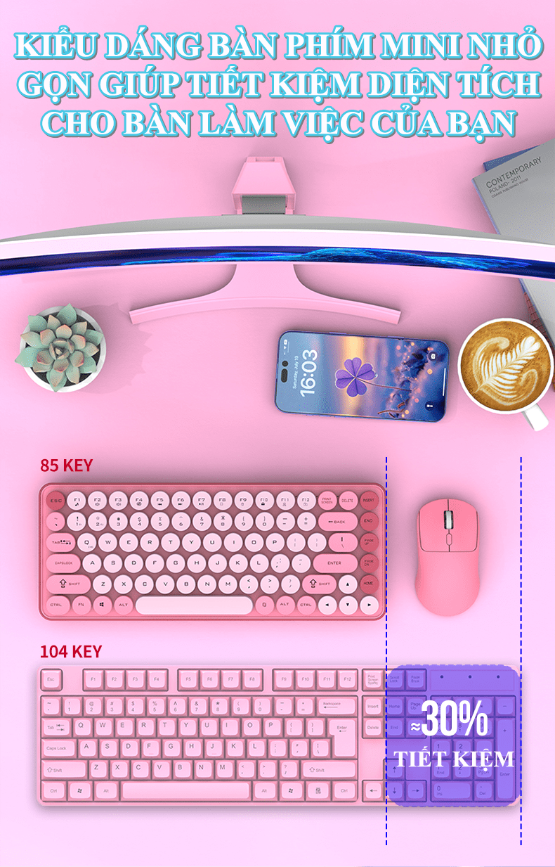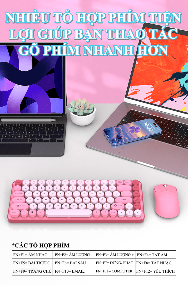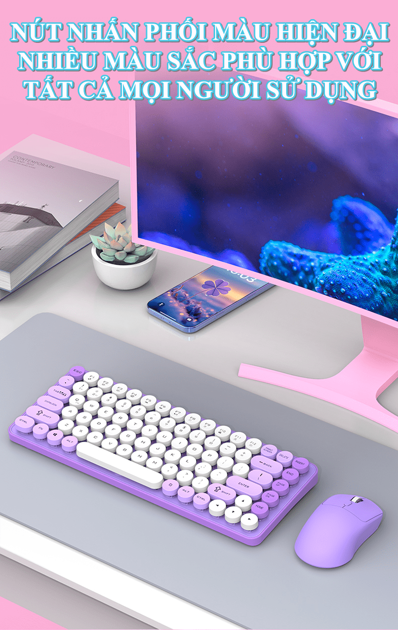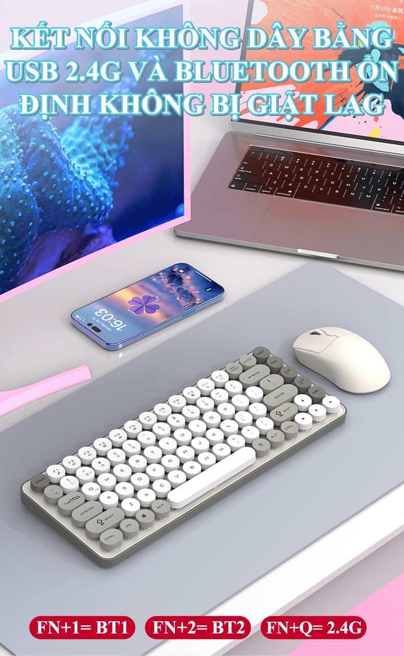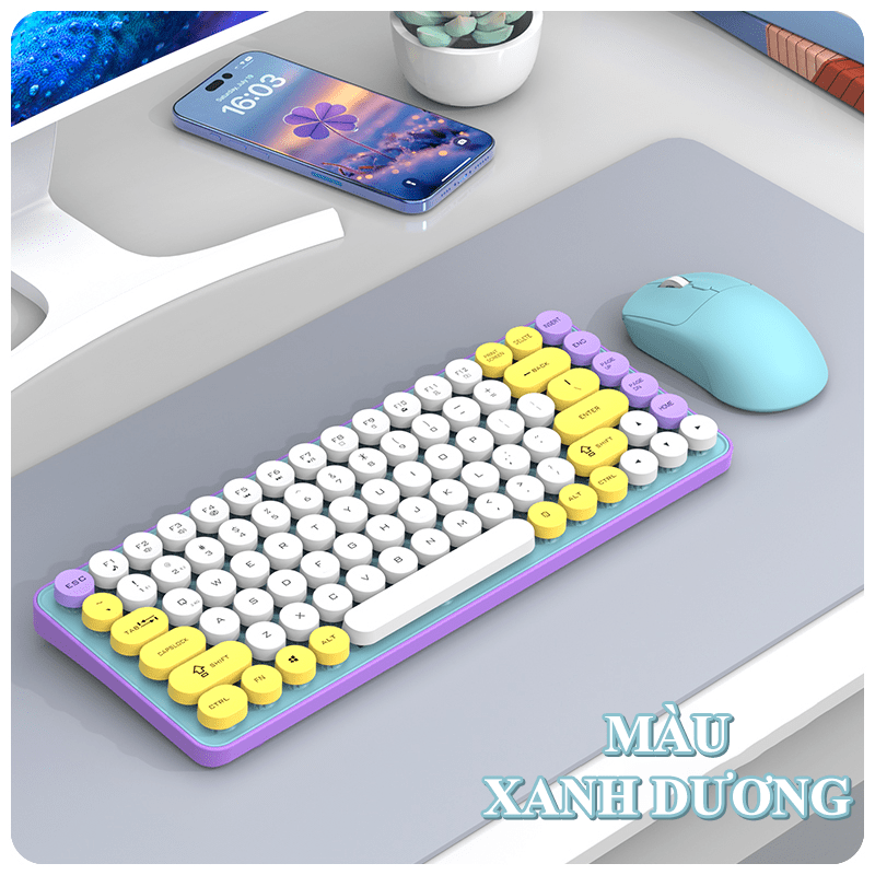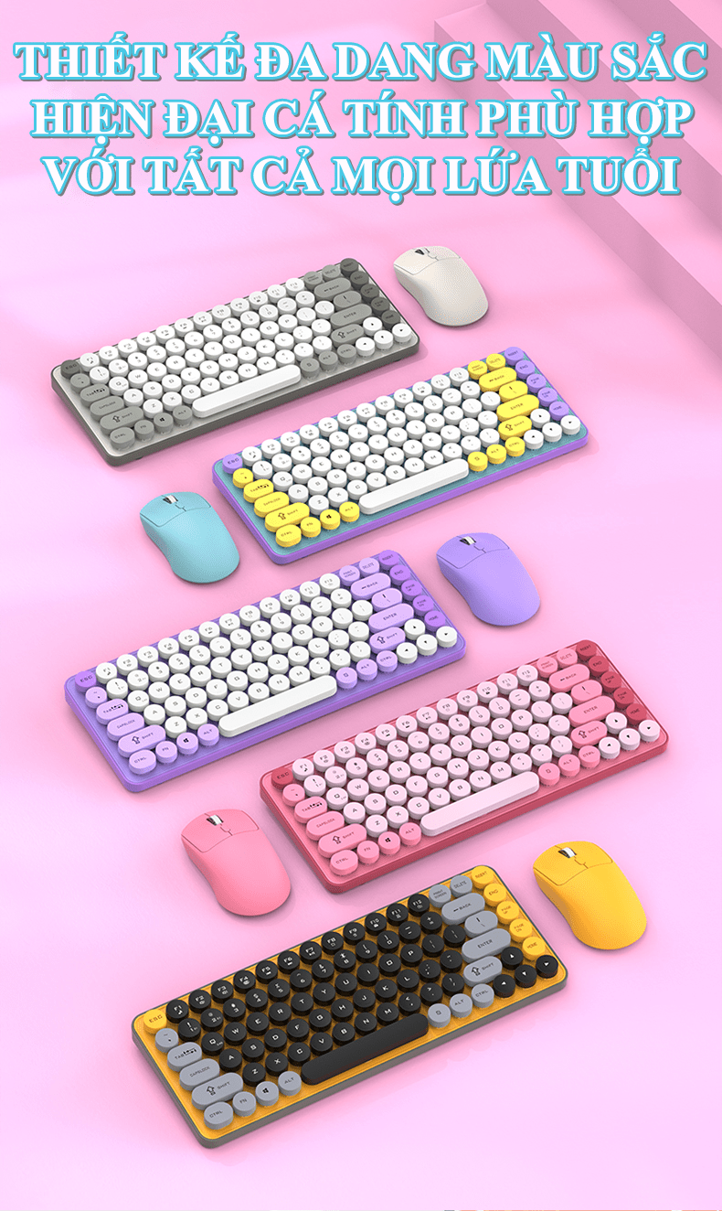 Đây là một bộ combo bàn phím và chuột không dây giá rẻ, hướng đến đối tượng người dùng phổ thông, văn phòng, hoặc học sinh/sinh viên với thiết kế trẻ trung, gọn nhẹ và đa dạng kết nối.