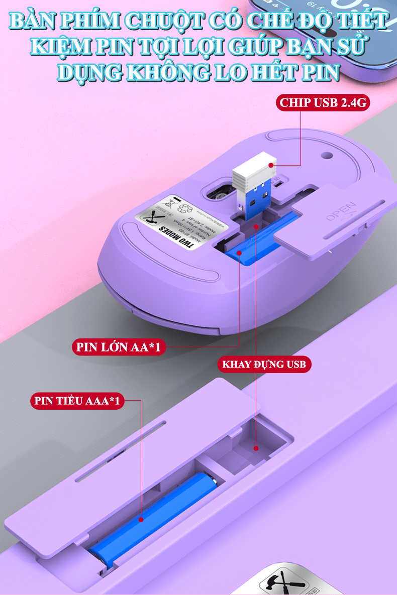 - Tiết kiệm pin: Cả bàn phím và chuột đều có chế độ tự động ngủ (sleep) để tiết kiệm năng lượng, thời gian sử dụng lâu.