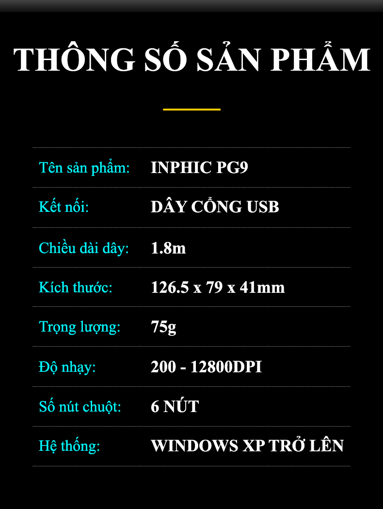Chuột chơi game INPHIC PG9 là một sản phẩm được thiết kế dành riêng cho game thủ với nhiều tính năng cao cấp. Dưới đây là một số thông tin nổi bật về sản phẩm này: