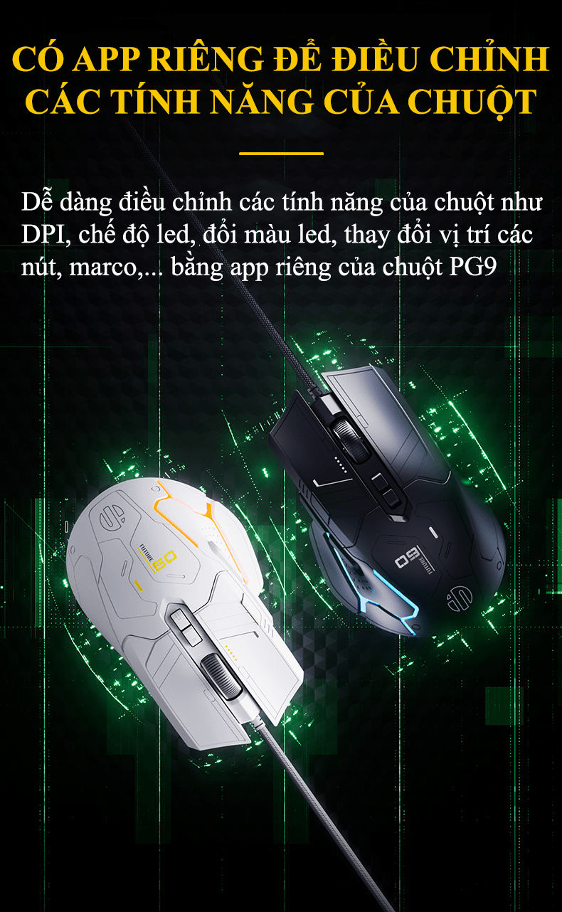 Phần mềm điều khiển riêng: Hỗ trợ Macro (phím tùy chỉnh), chỉnh DPI, điều chỉnh đèn LED,...
