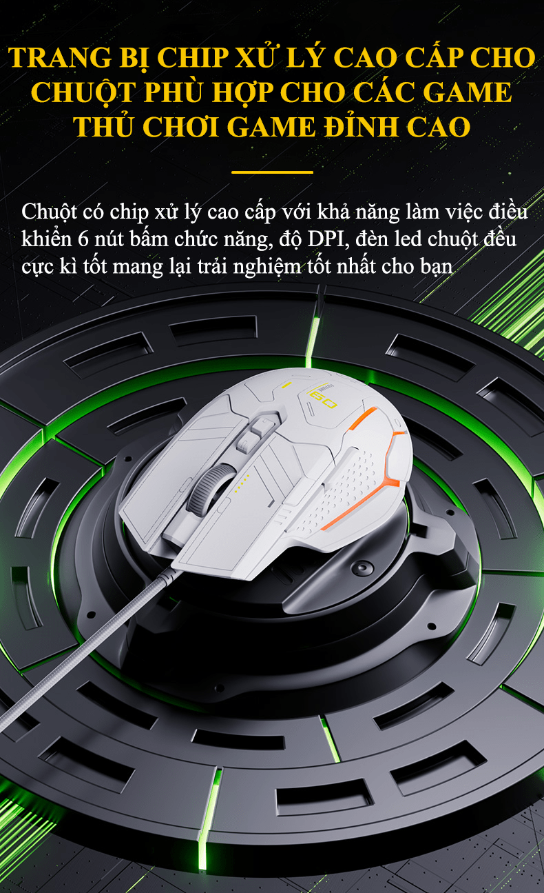 Cảm biến cao cấp: Độ nhạy lên đến 12800 DPI, giúp điều khiển chính xác, mượt mà trong các tựa game FPS, MOBA,...