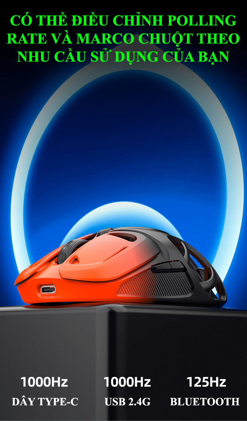 Tần số báo cáo (Polling Rate): Lên đến 1000Hz (1ms delay), giảm input lag.