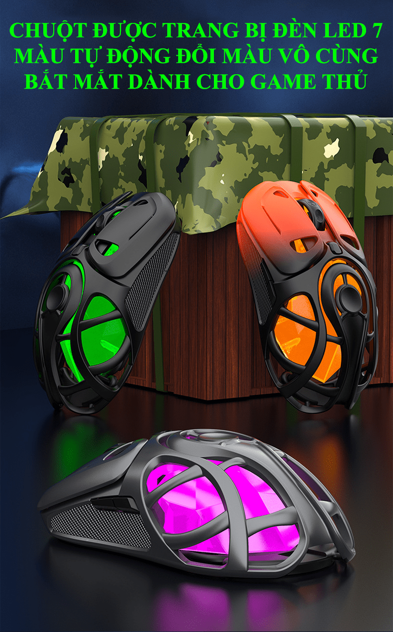 Đèn LED 7 màu bắt mắt: 7 màu tự động đổi, hiệu ứng ánh sáng bắt mắt, tăng trải nghiệm gaming.