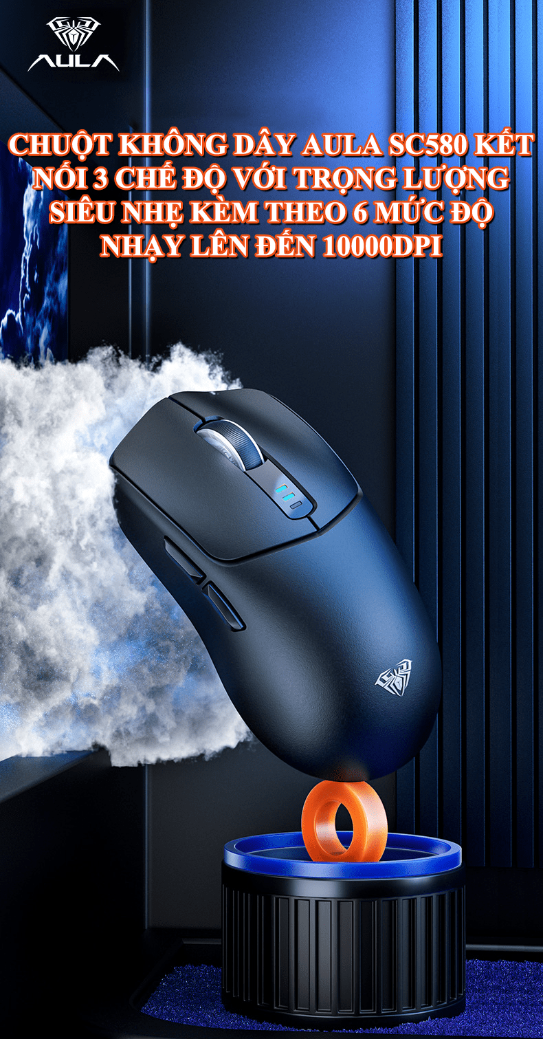 Chuột không dây chuyên game AULA SC580 trọng lượng cực nhẹ 82g với độ nhạy lên đến 10000DPI dành cho game thủ