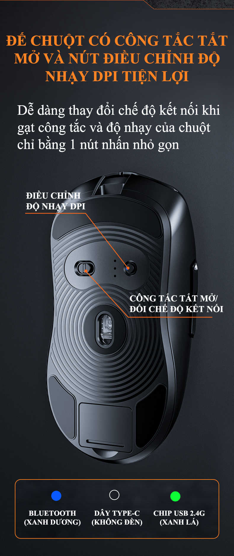 - 3 chế độ kết nối sử dụng chuột trên mọi thiết bị