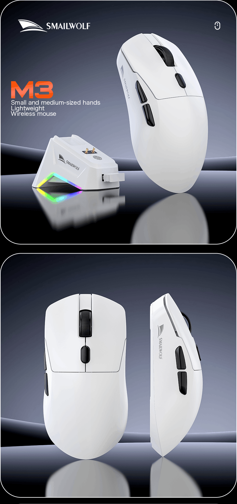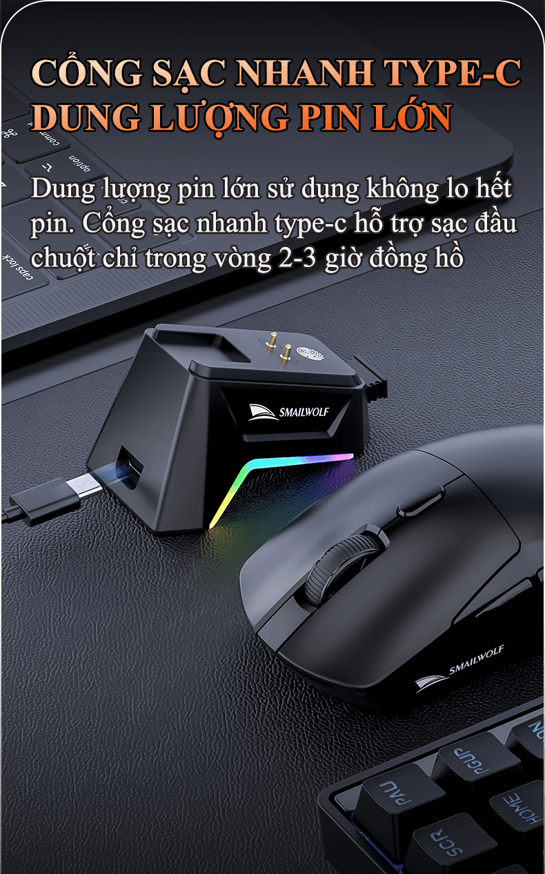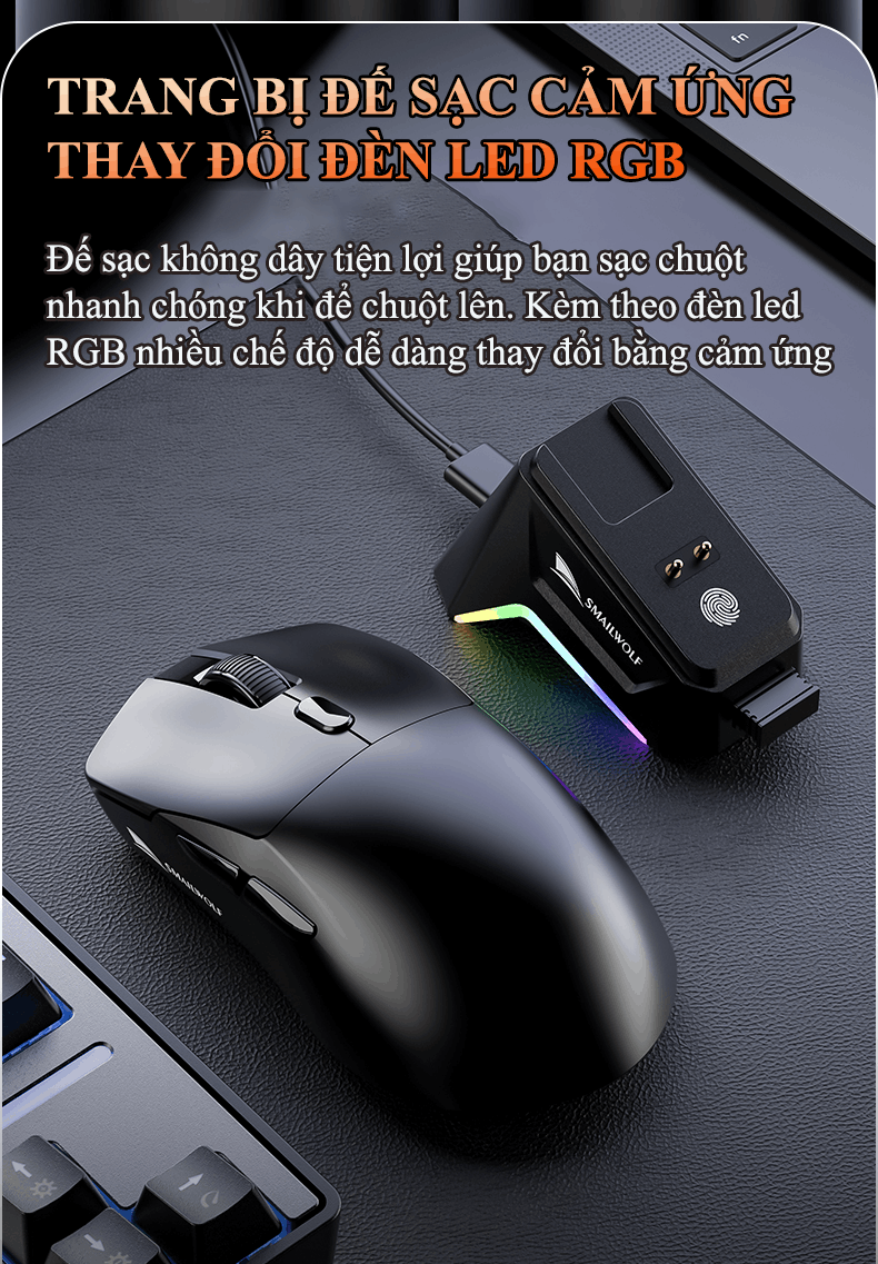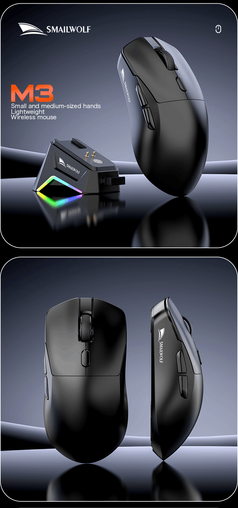 Chuột không dây chuyên game SMAILWOLF M3/ M3 PRO+ kết nối 3 chế độ BT - 2.4G - TYPE-C với độ nhạy lên đến 12000DPI kèm theo đế sạc không dây đèn led RGB