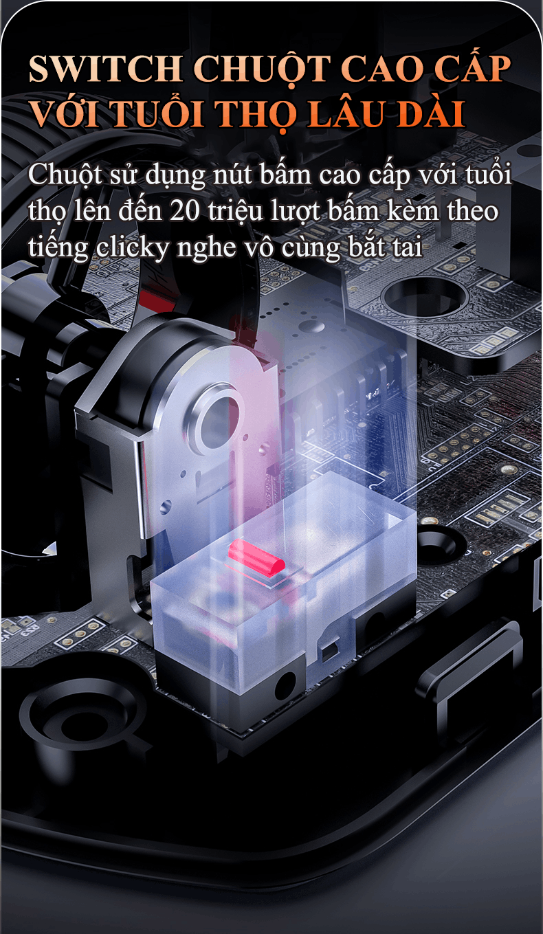 + Nút bấm: Các nút thường được sử dụng micro switch có độ bền cao, âm bấm giòn và phản hồi nhanh.