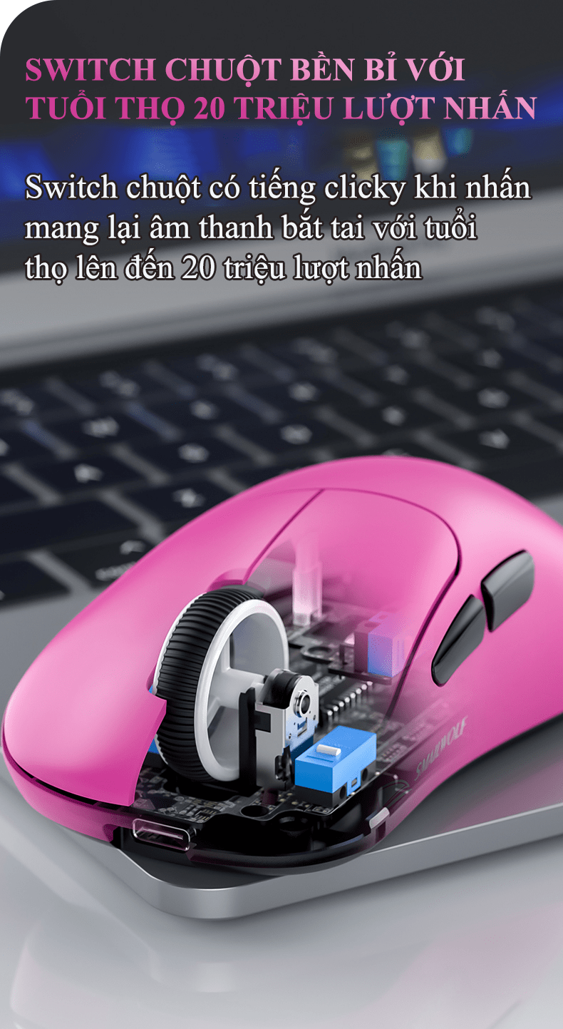 + Kết hợp hoàn hảo: Cặp đôi cảm biến PAW3311 (độ chính xác) + Polling Rate 1000Hz (độ mượt & phản hồi nhanh) tạo nên trải nghiệm chơi game rất tuyệt vời