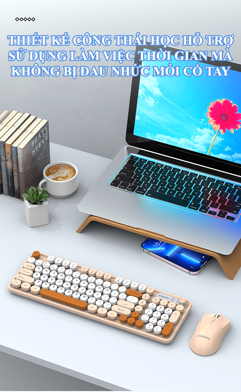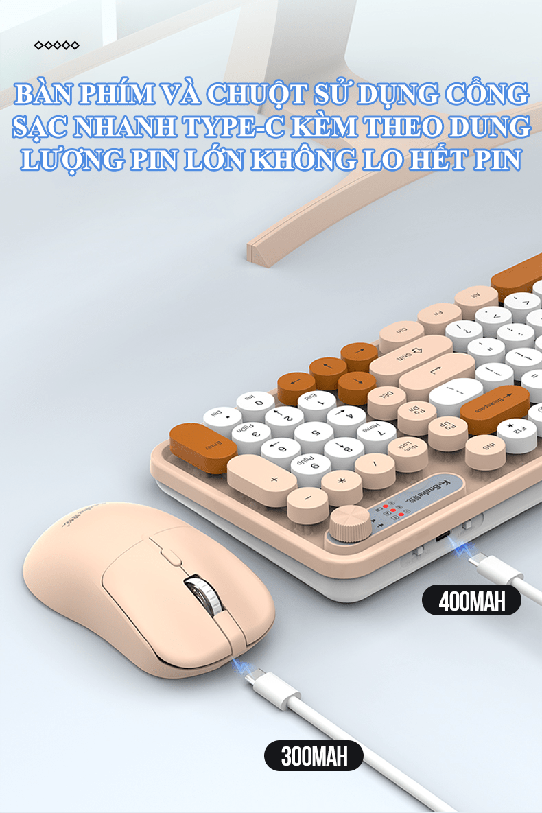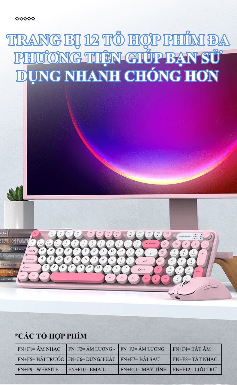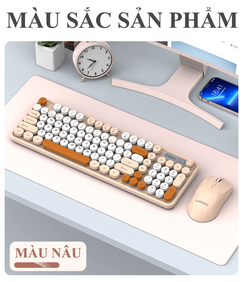 Combo bàn phím và chuột không dây K-SNAKE WK300 thiết kế nút tròn kết nối USB 2.4G và Bluetooth với nhiều màu sắc phối màu hiện đại thời trang
