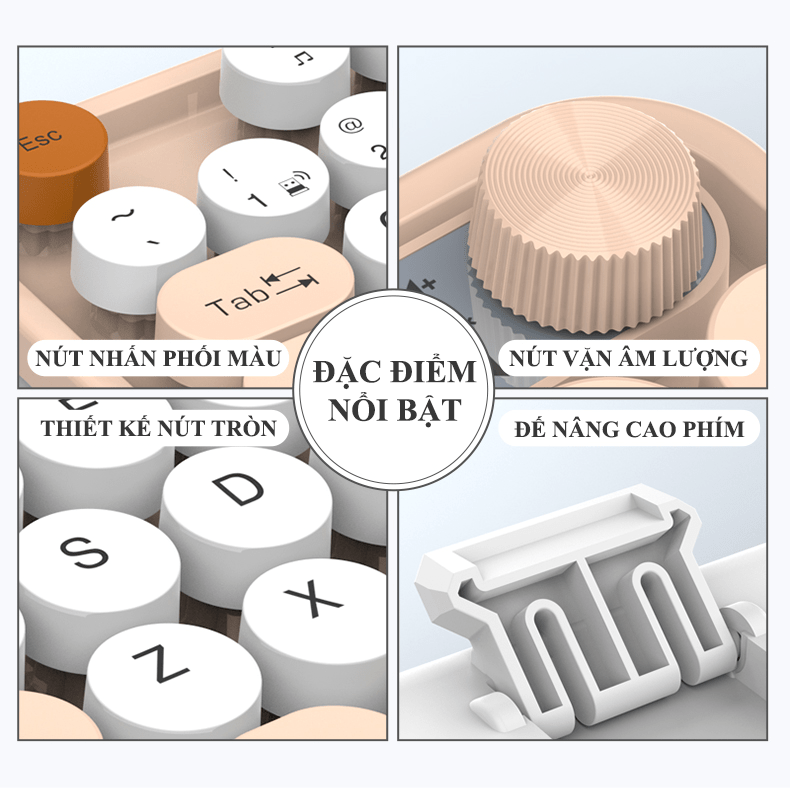 - Nút tròn (Round Keycaps): Các phím có hình tròn độc đáo, tạo điểm nhấn khác biệt so với các bàn phím thông thường, mang lại cảm giác mới lạ và đáng yêu.