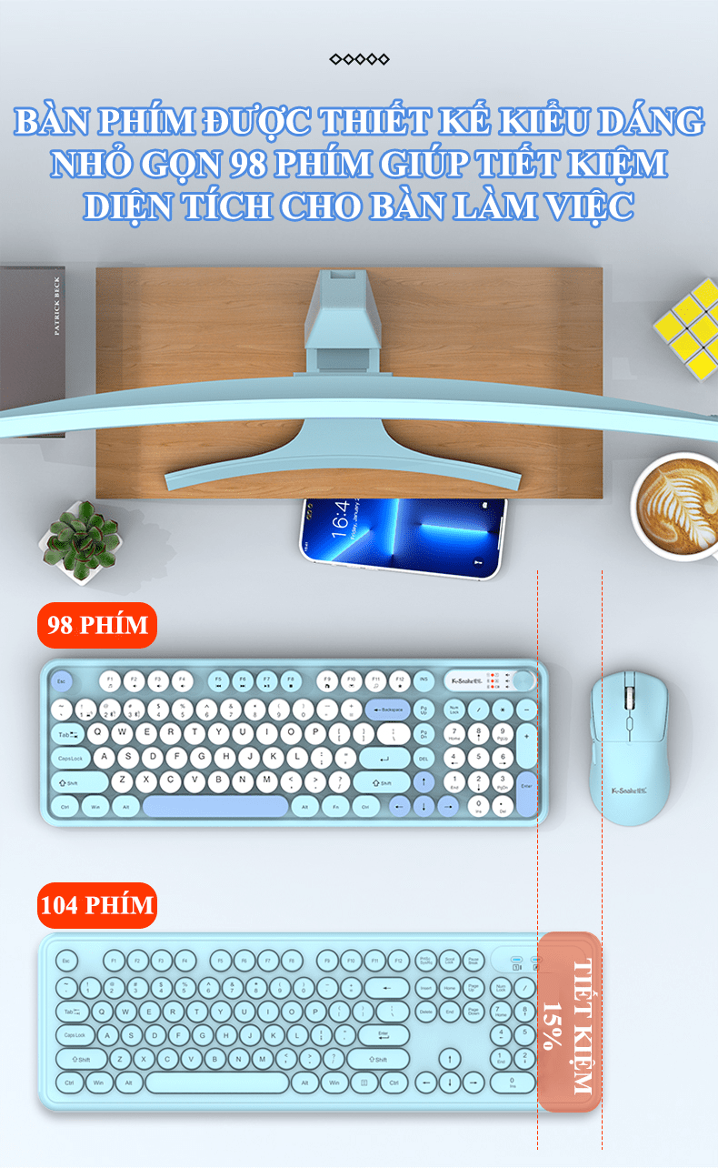 Đây là một bộ combo bàn phím và chuột không dây giá rẻ, hướng đến đối tượng người dùng phổ thông, văn phòng, hoặc học sinh/sinh viên với thiết kế trẻ trung, gọn nhẹ và đa dạng kết nối.