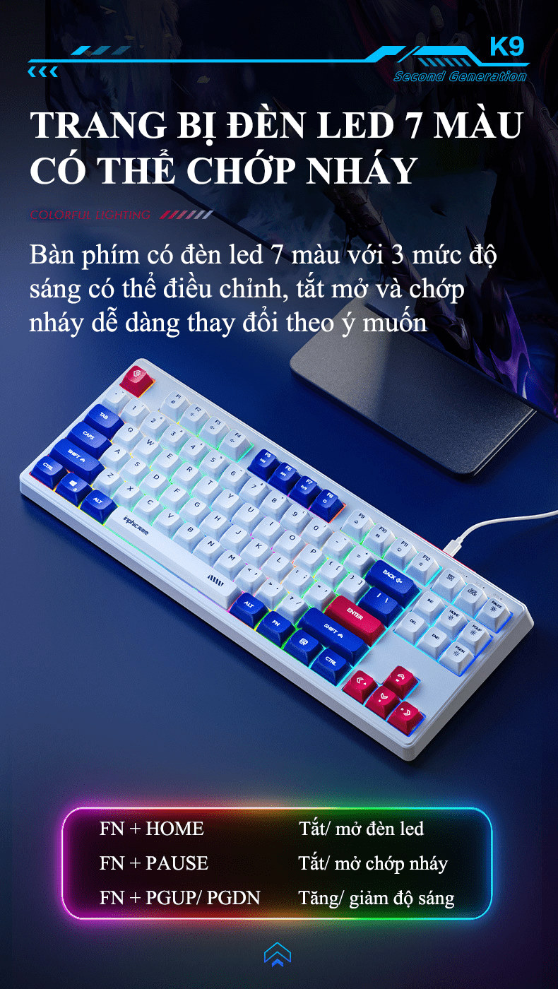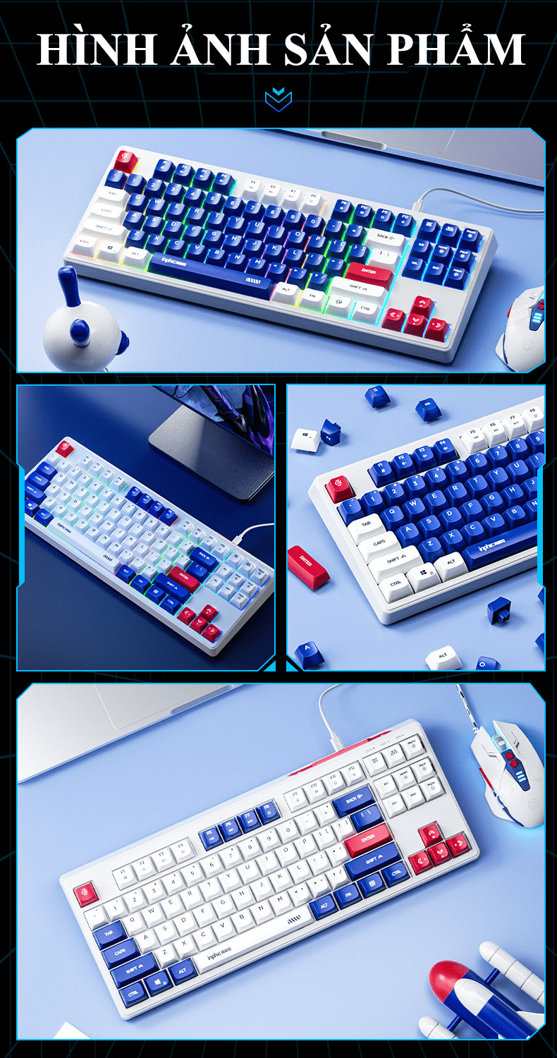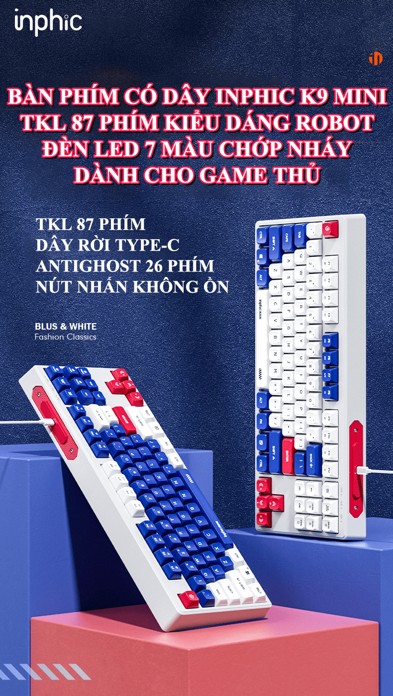 Bàn phím có dây INPHIC K9MINI (K902) thiết kế TKL 87 phím kiểu dáng robot đèn led 7 màu chớp nháy dành cho game thủ