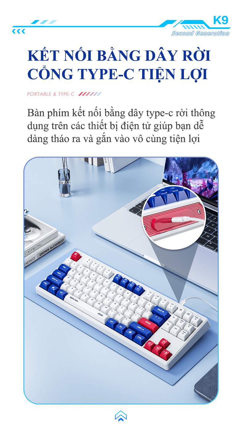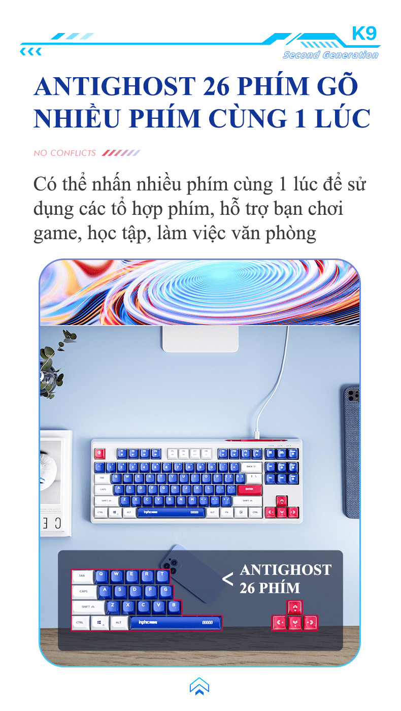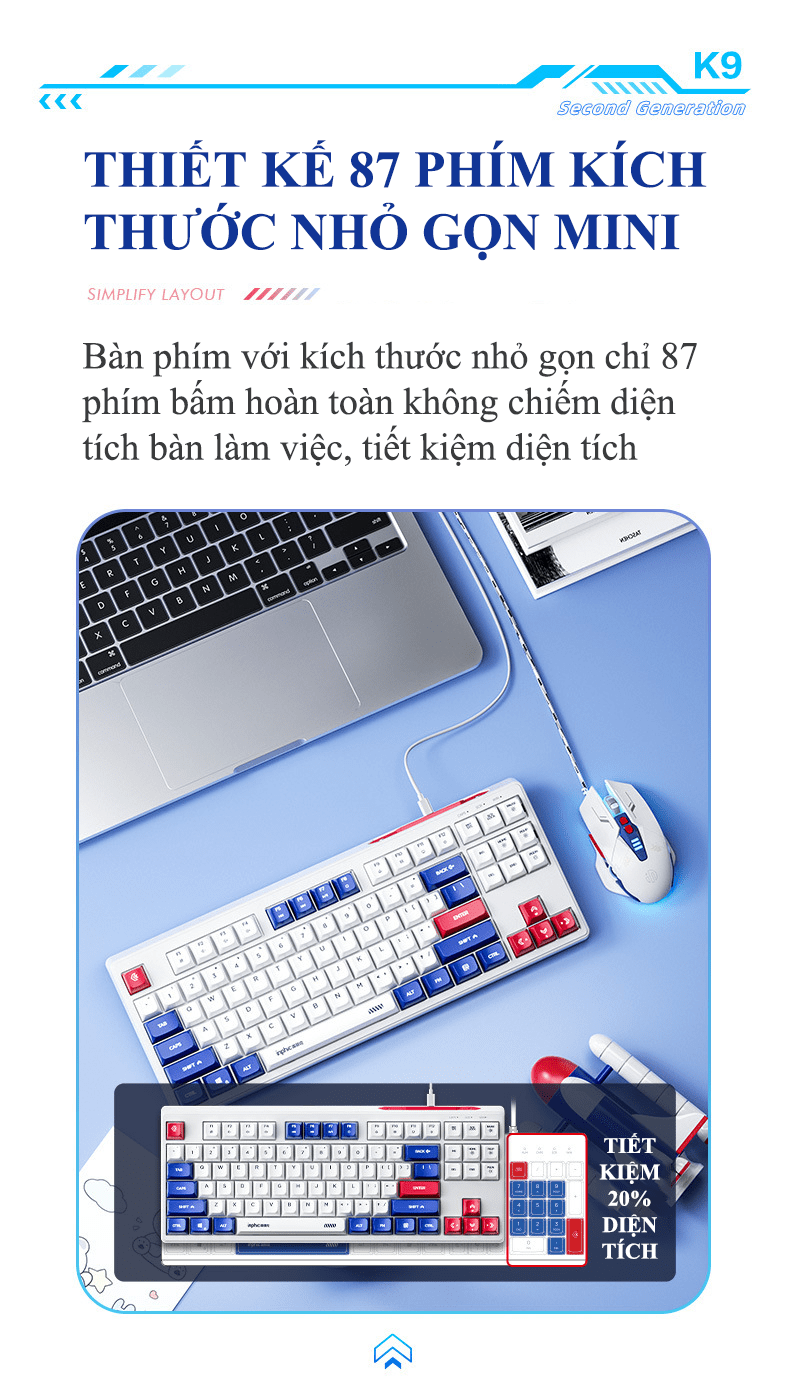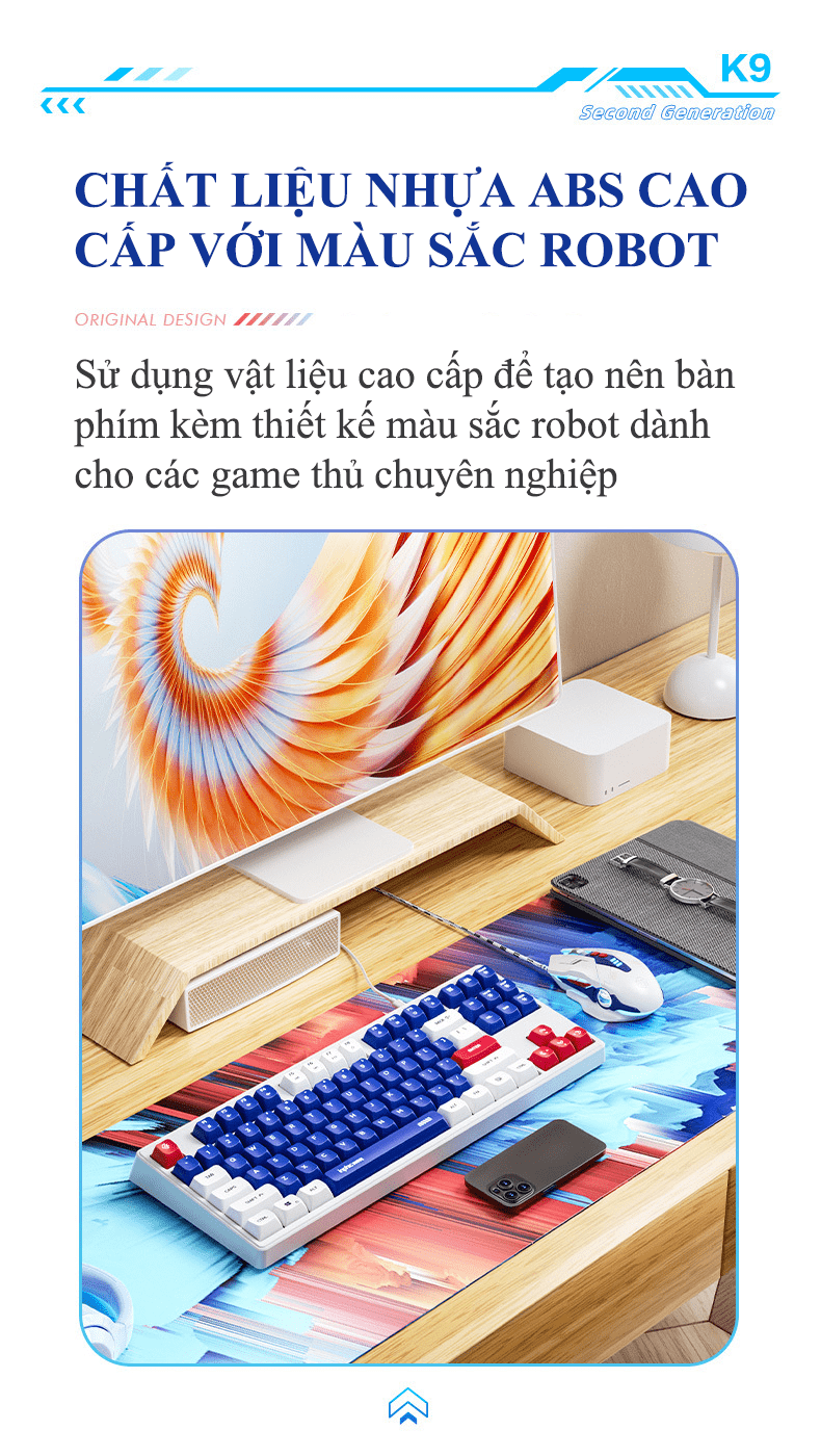Bàn phím có dây INPHIC K9MINI (K902) thiết kế TKL 87 phím kiểu dáng robot đèn led 7 màu chớp nháy dành cho game thủ