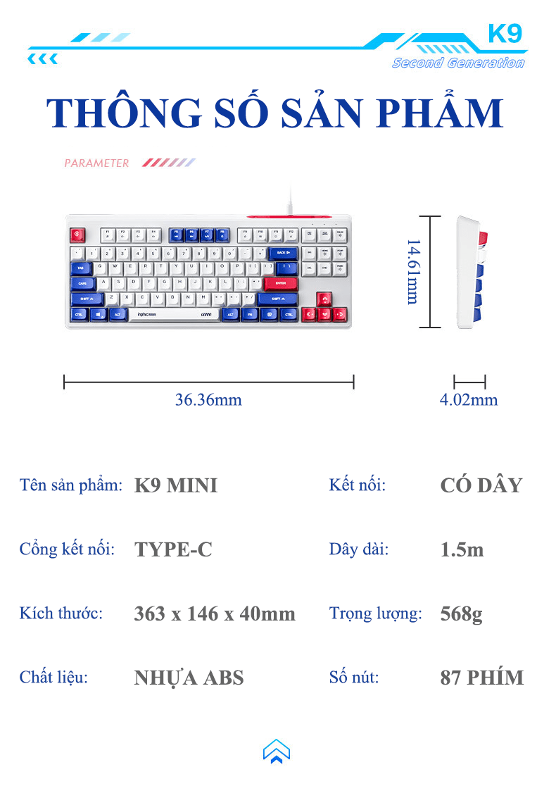 Kích thước phím: 363 x 146 x 40 mm