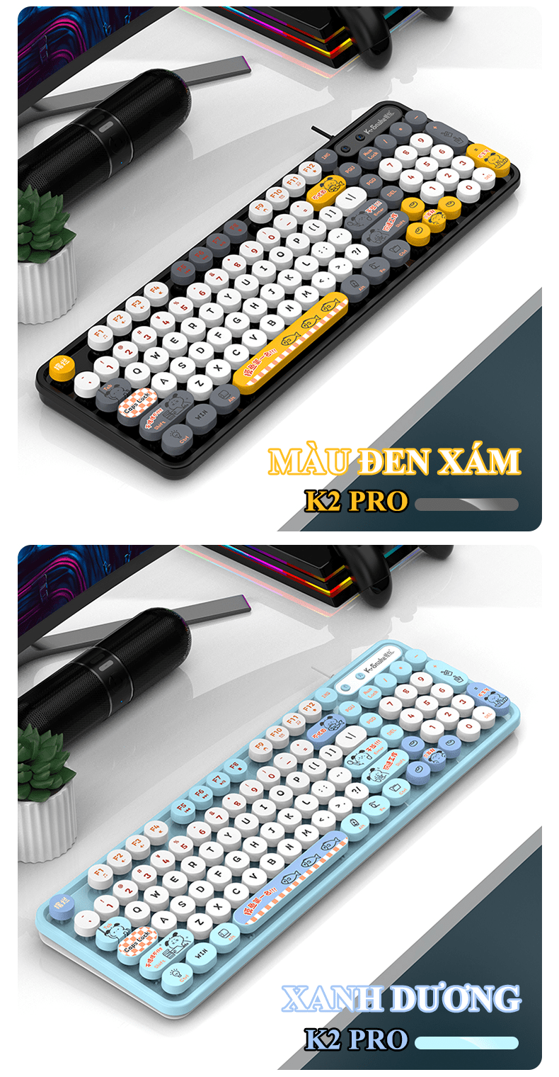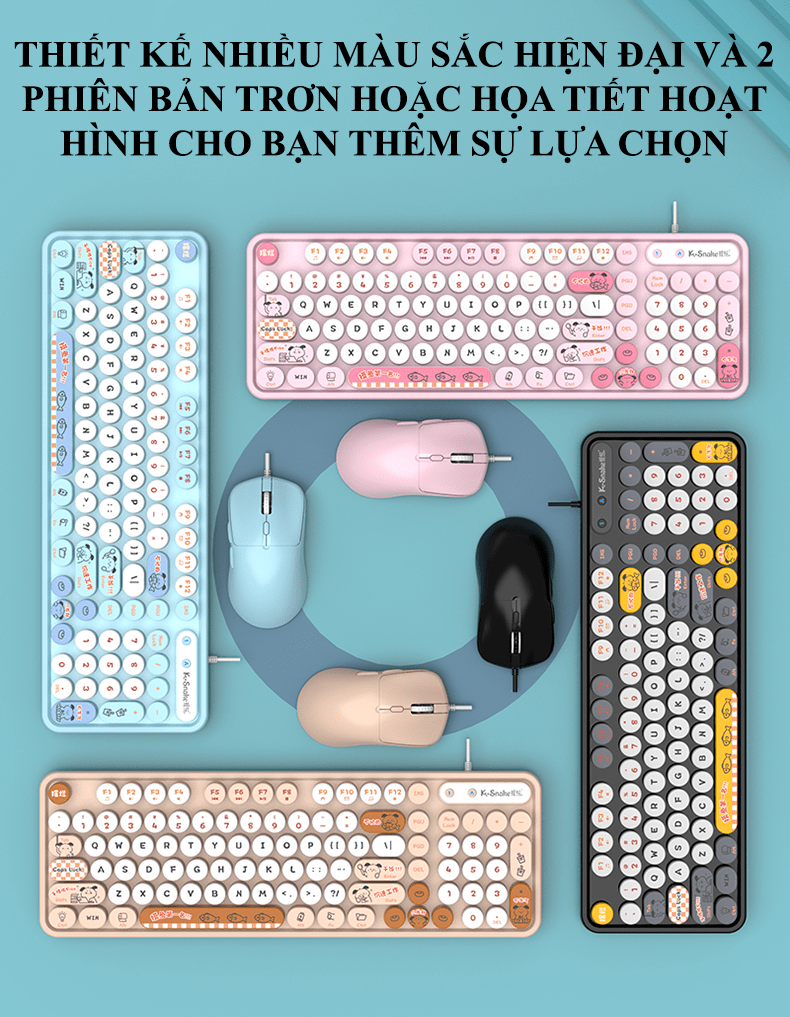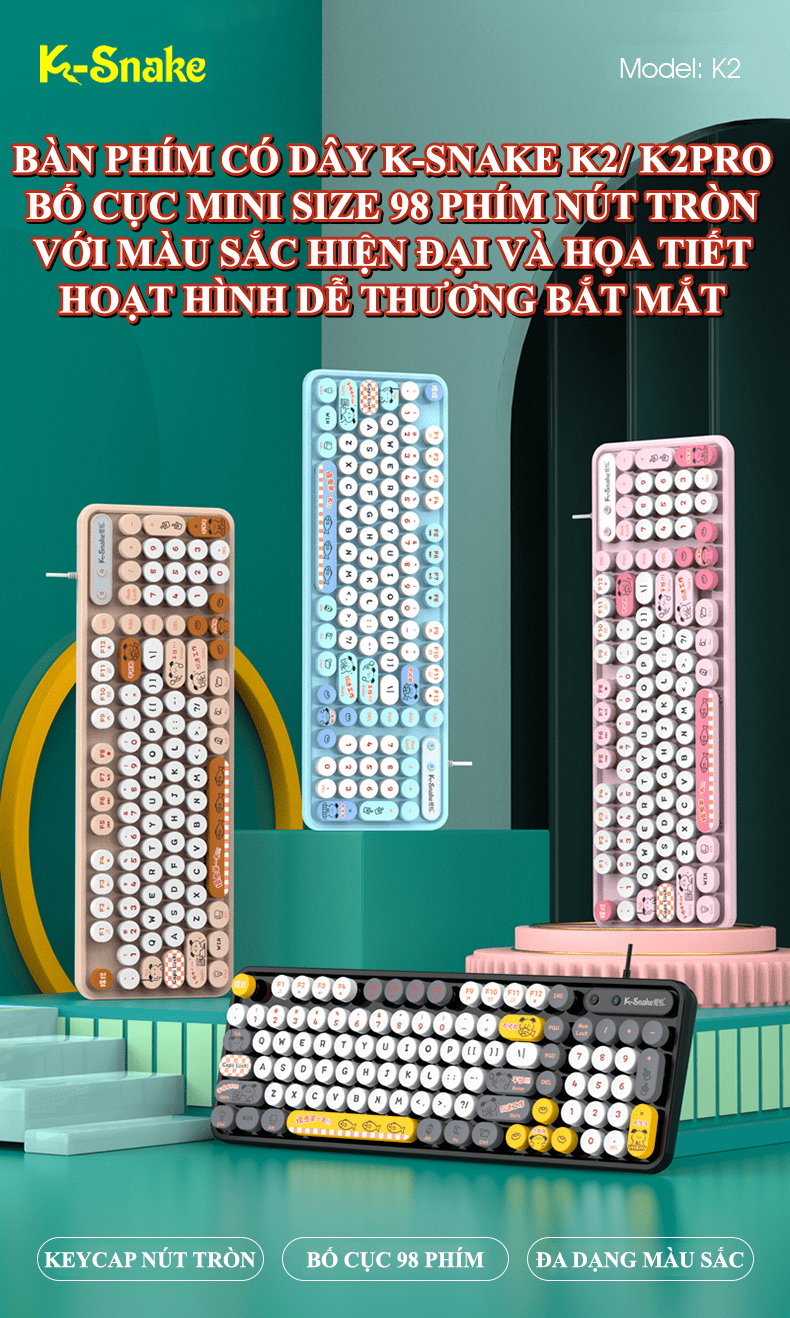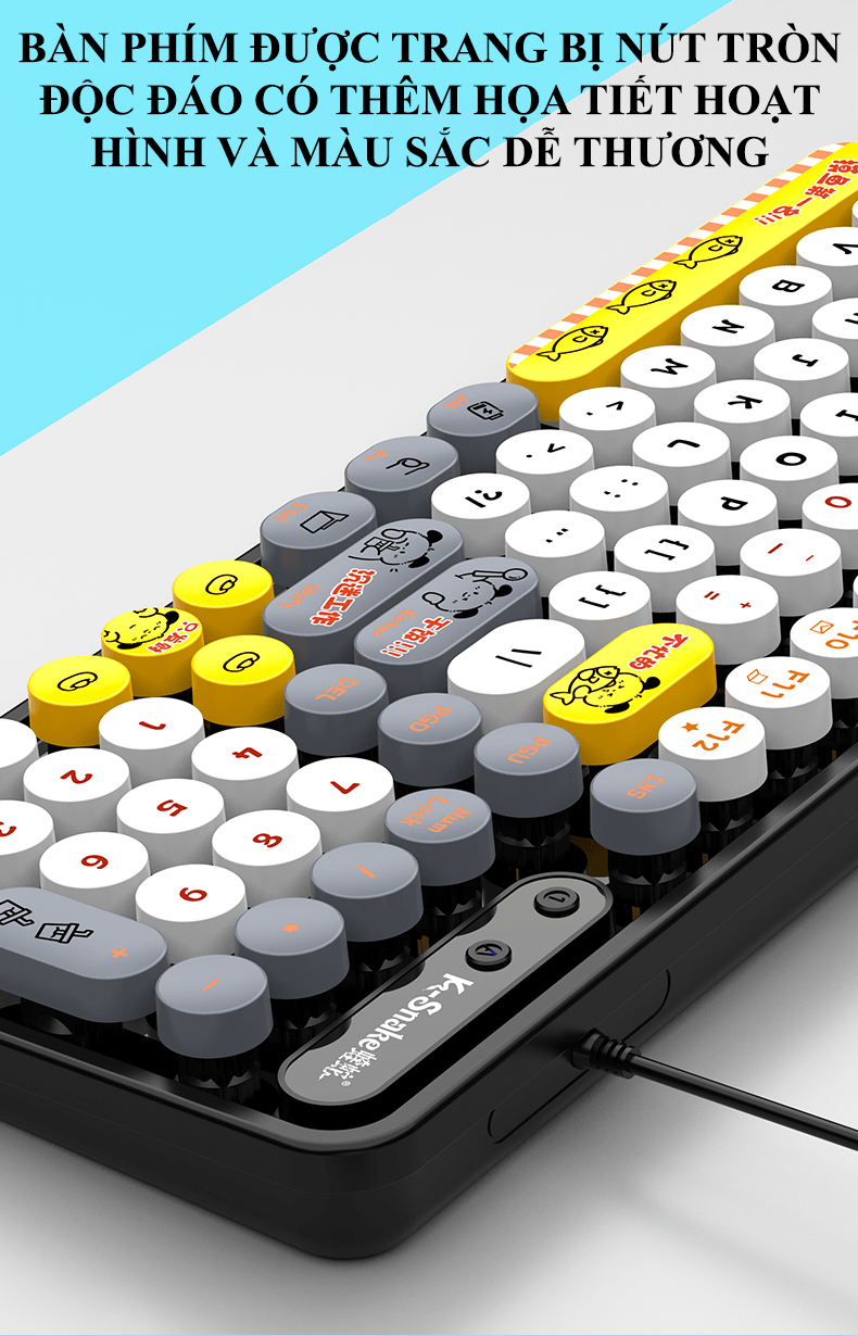 Bàn phím có dây K-SNAKE K2 PRO với thiết kế màu sắc hiện đại trẻ trung kèm theo họa tiết hoạt hình vô cùng dễ thương