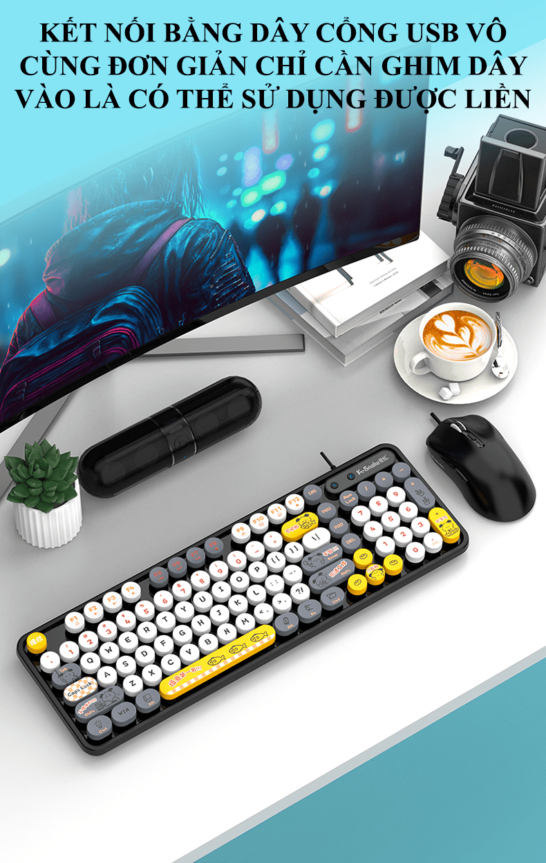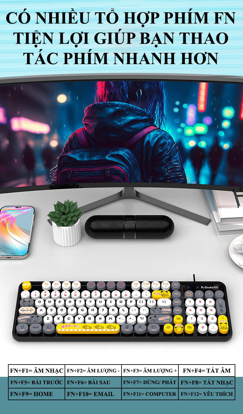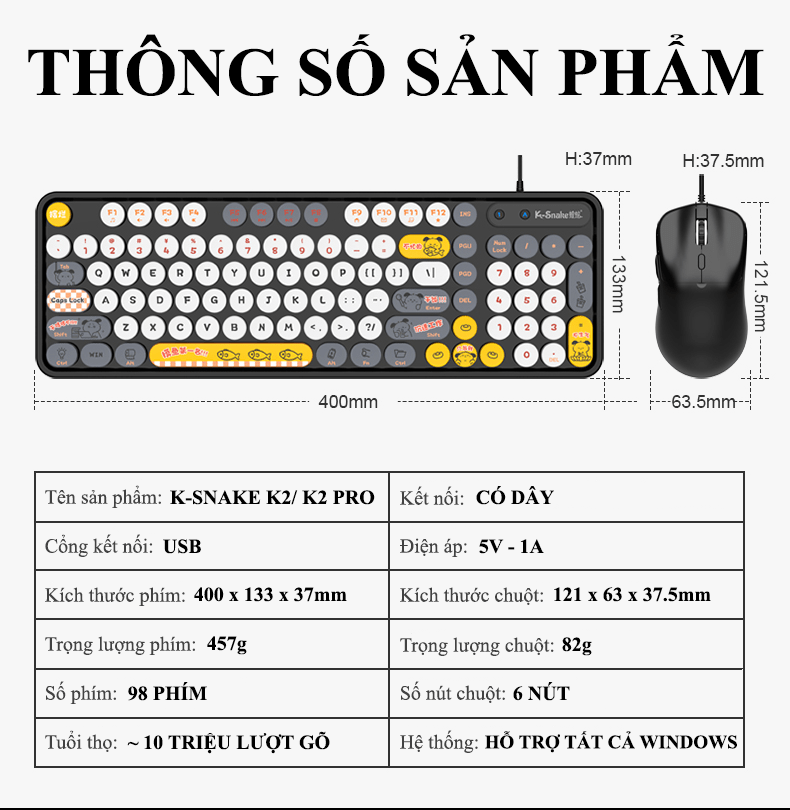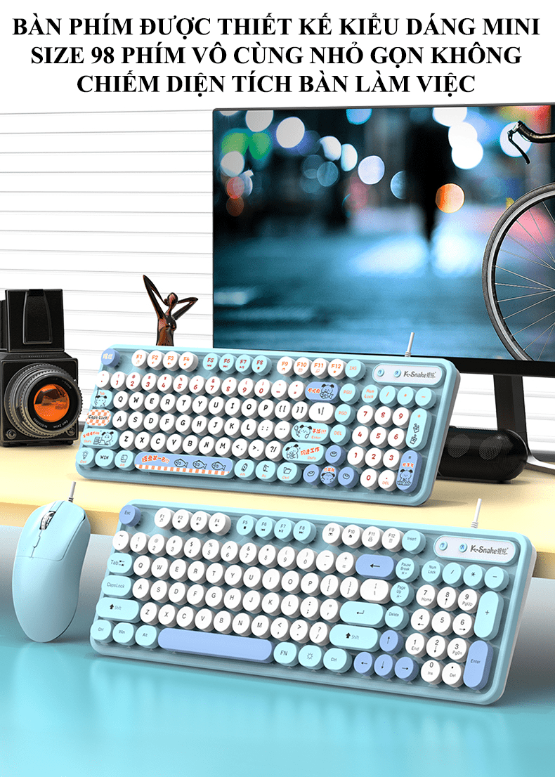 Bàn phím có dây K-SNAKE K2 PRO với thiết kế màu sắc hiện đại trẻ trung kèm theo họa tiết hoạt hình vô cùng dễ thương