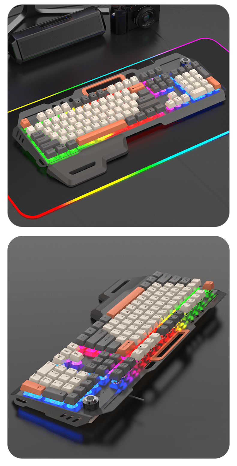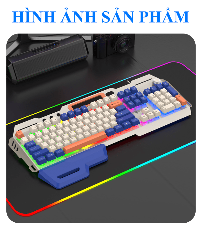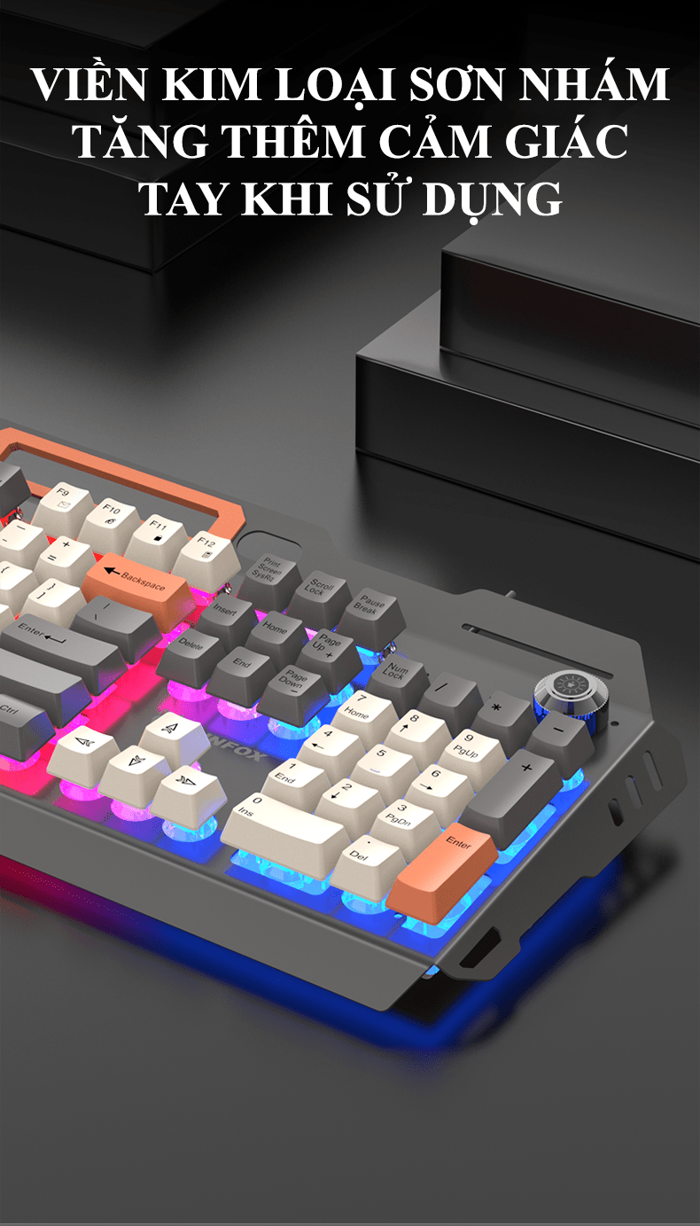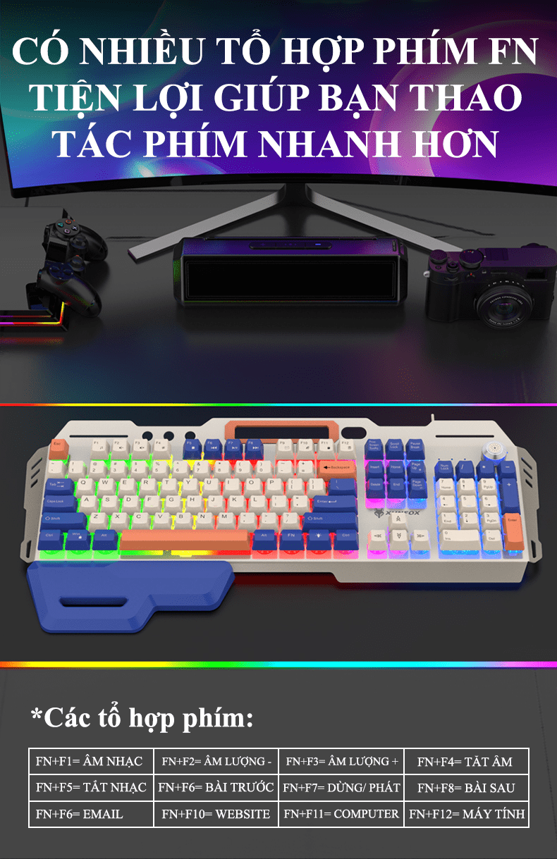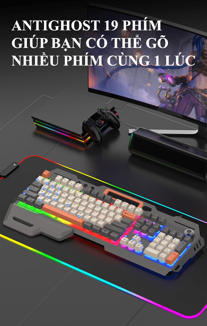 Bàn phím giả cơ chuyên game XUNFOX K90 có đèn led 7 màu chớp nháy cực đẹp kèm theo khay đựng điện thoại tiện lợi