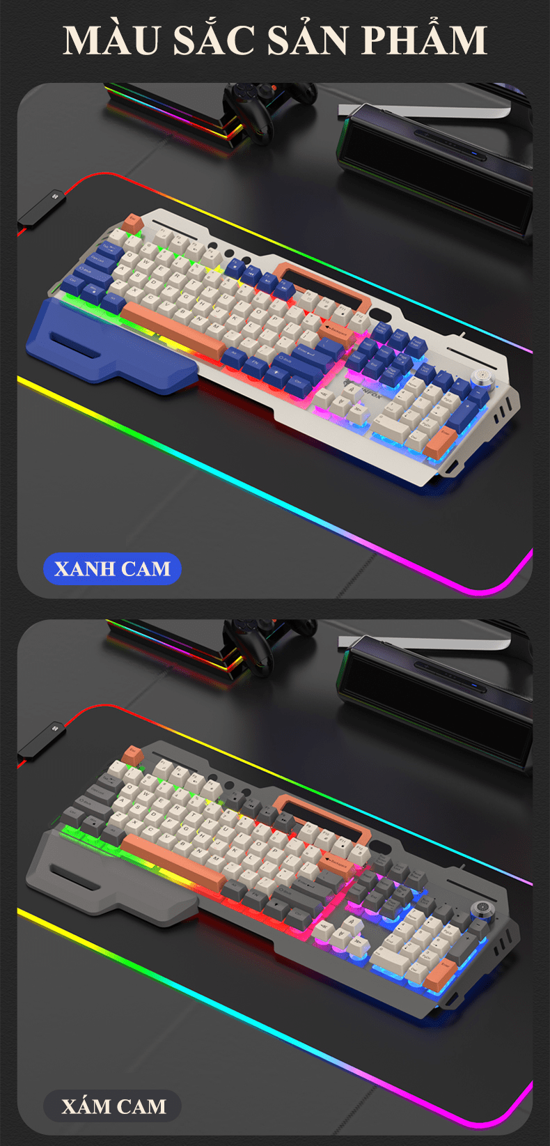Đèn led nền và led phím với 7 màu và tắt mở, chớp nháy.