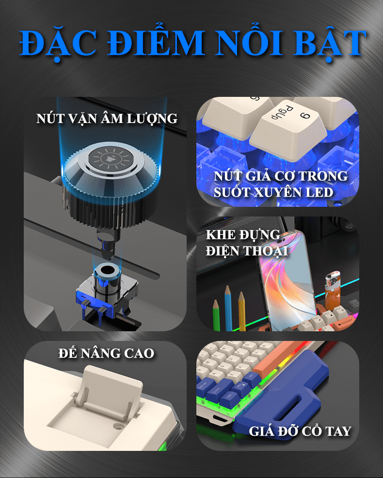 Thiết kế thêm khay đựng điện thoại và đựng bút trên bàn phím