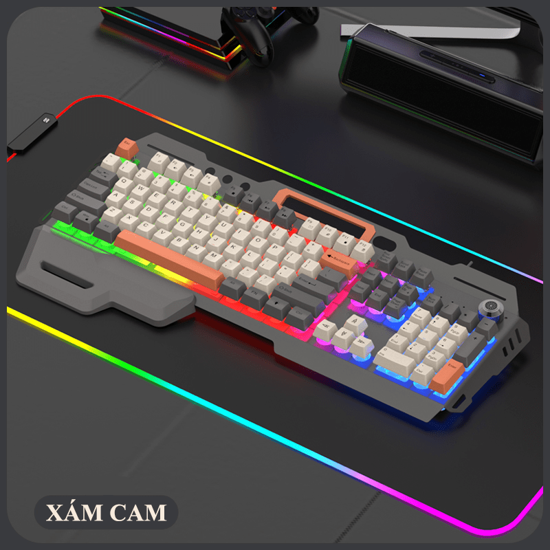 Bàn phím giả cơ chuyên game XUNFOX K90 có đèn led 7 màu chớp nháy cực đẹp kèm theo khay đựng điện thoại tiện lợi