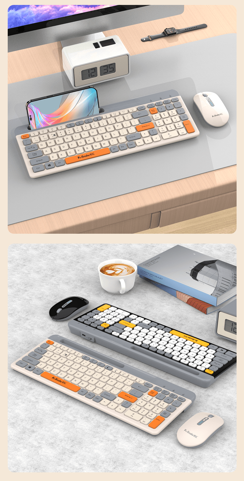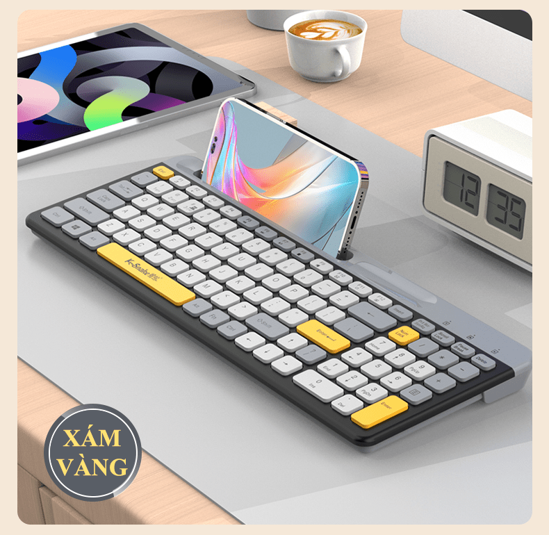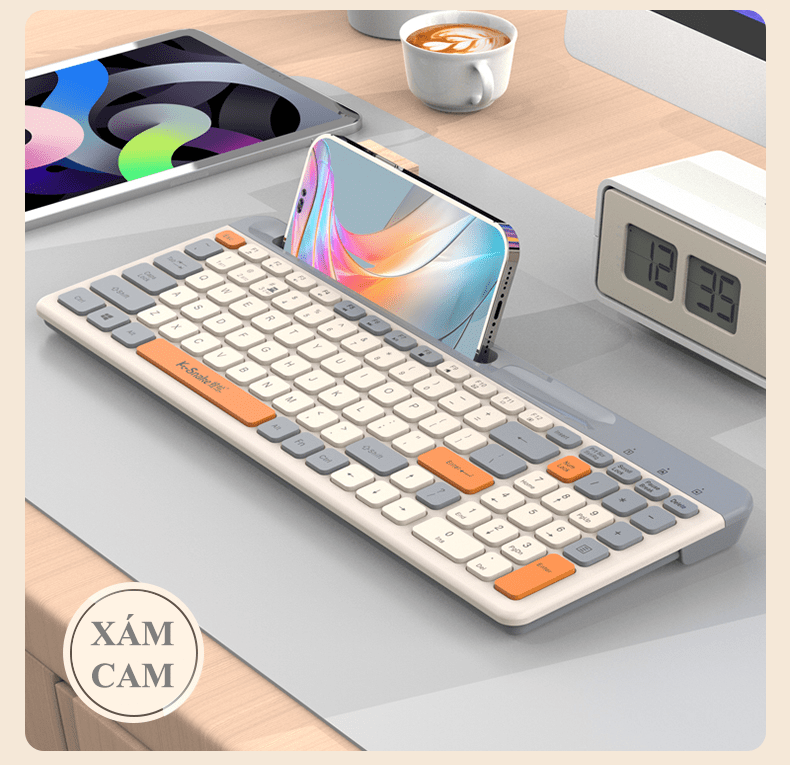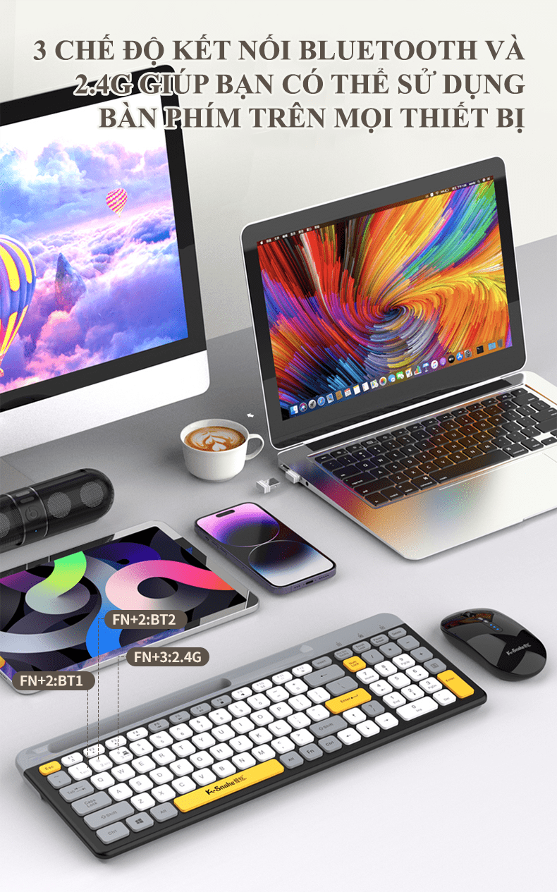 Bàn phím không dây K-SNAKE K100 kết nối không dây 3 chế độ Bluetooth và USB 2.4G thiết kế 100 phím phối màu hiện đại với nút nhấn không tiếng ồn