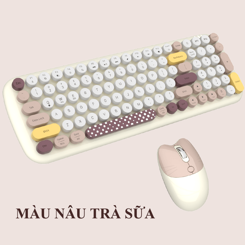 Bàn phím và chuột không dây CANDY PRO kết nối Bluetooth và USB 2.4G thiết kế 100 phím nút tròn màu sắc nữ tính dễ thương