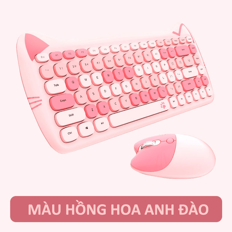 Bàn phím và chuột không dây kết nối chip USB 2.4G thiết kế tai mèo đáng yêu phong cách nữ tính 84 nút hình socola