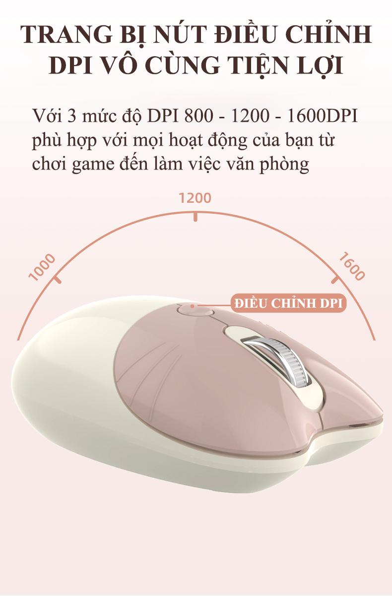 - Chuột hỗ trợ DPI lên tới 1600 nên giúp di chuyển mượt mà hơn và không gây ra độ trễ.