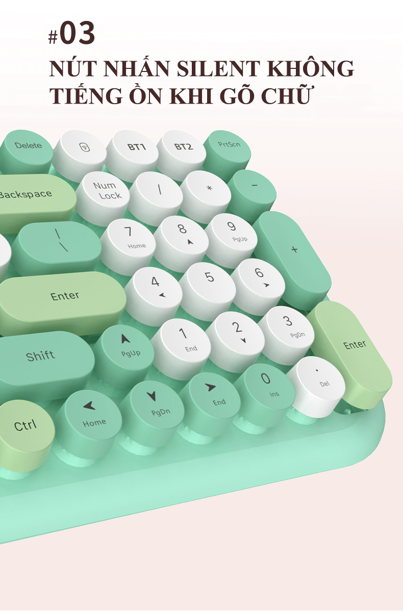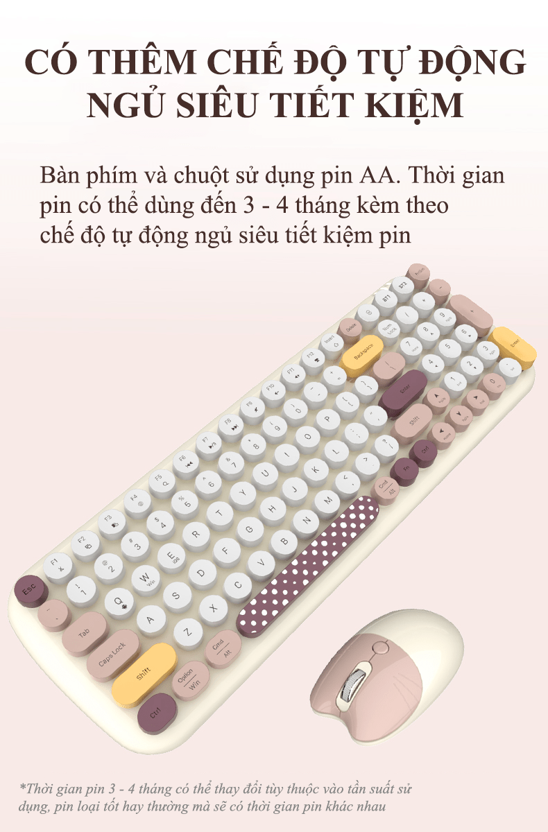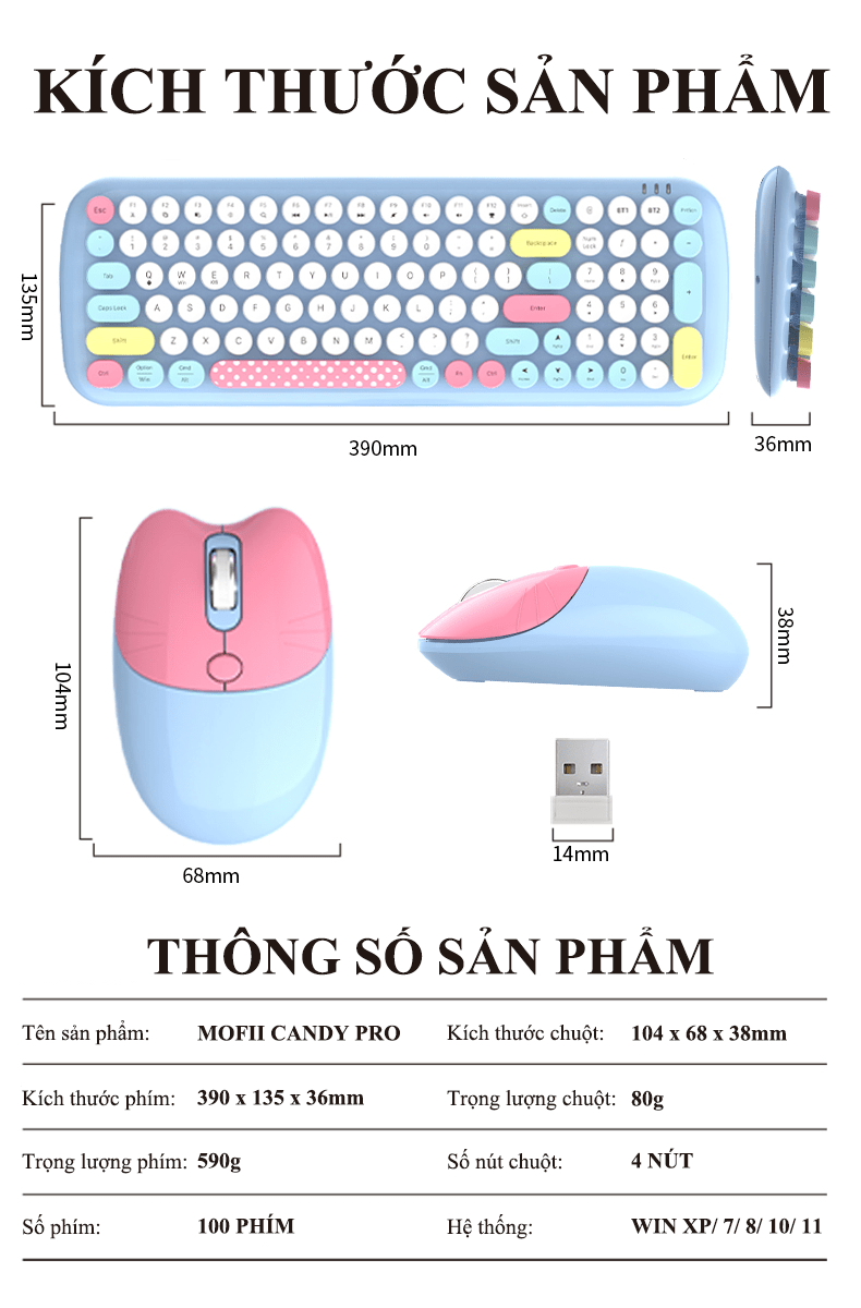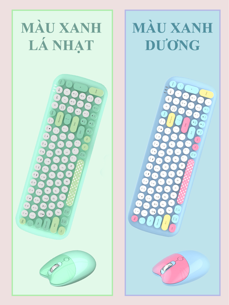 - Bộ bàn phím chuột không dây CANDY PRO được thiết kế dễ thương, hiện đại với sự kết hợp của nhiều màu sắc mang lại sự trải nghiệm mới mẻ.