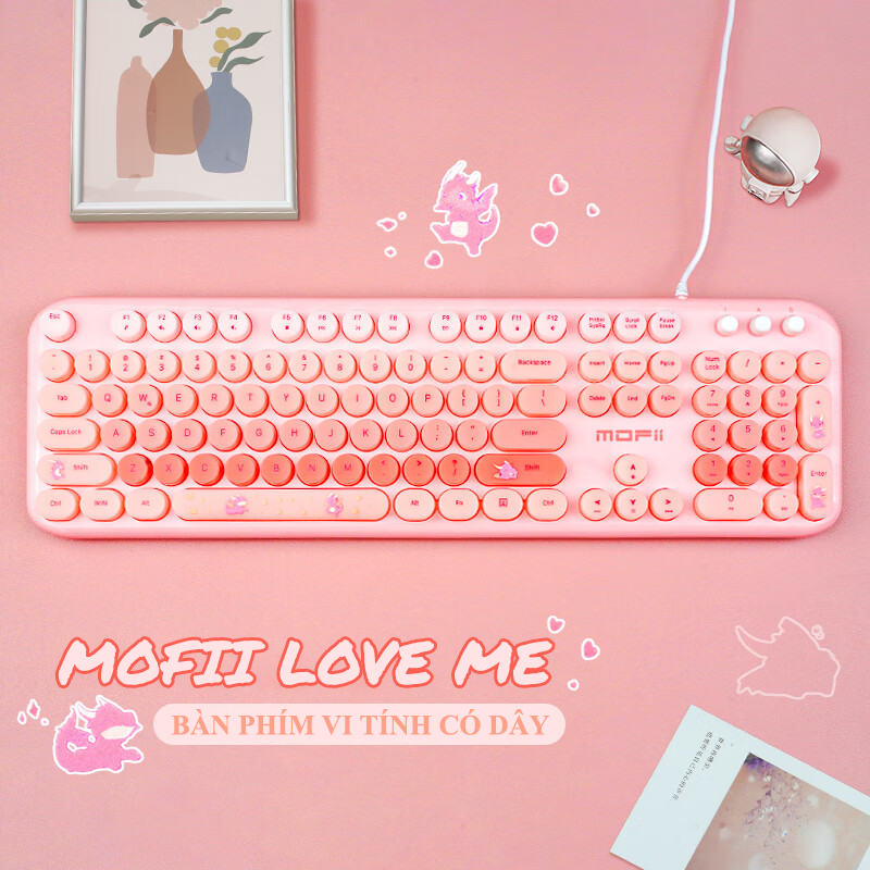 Bàn phím vi tính LOVE ME kết nối bằng dây cổng USB thiết kế nút tròn độc đáo với màu sắc nữ tính và họa tiết dễ thương
