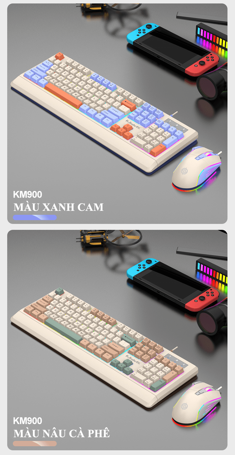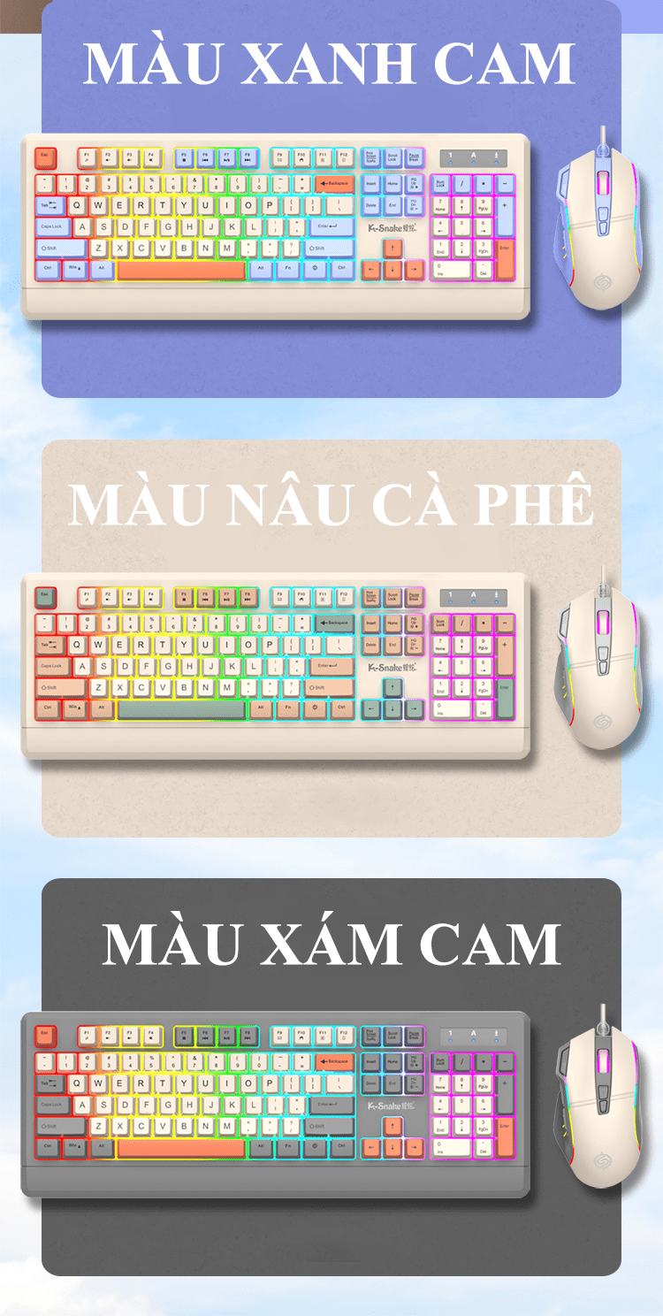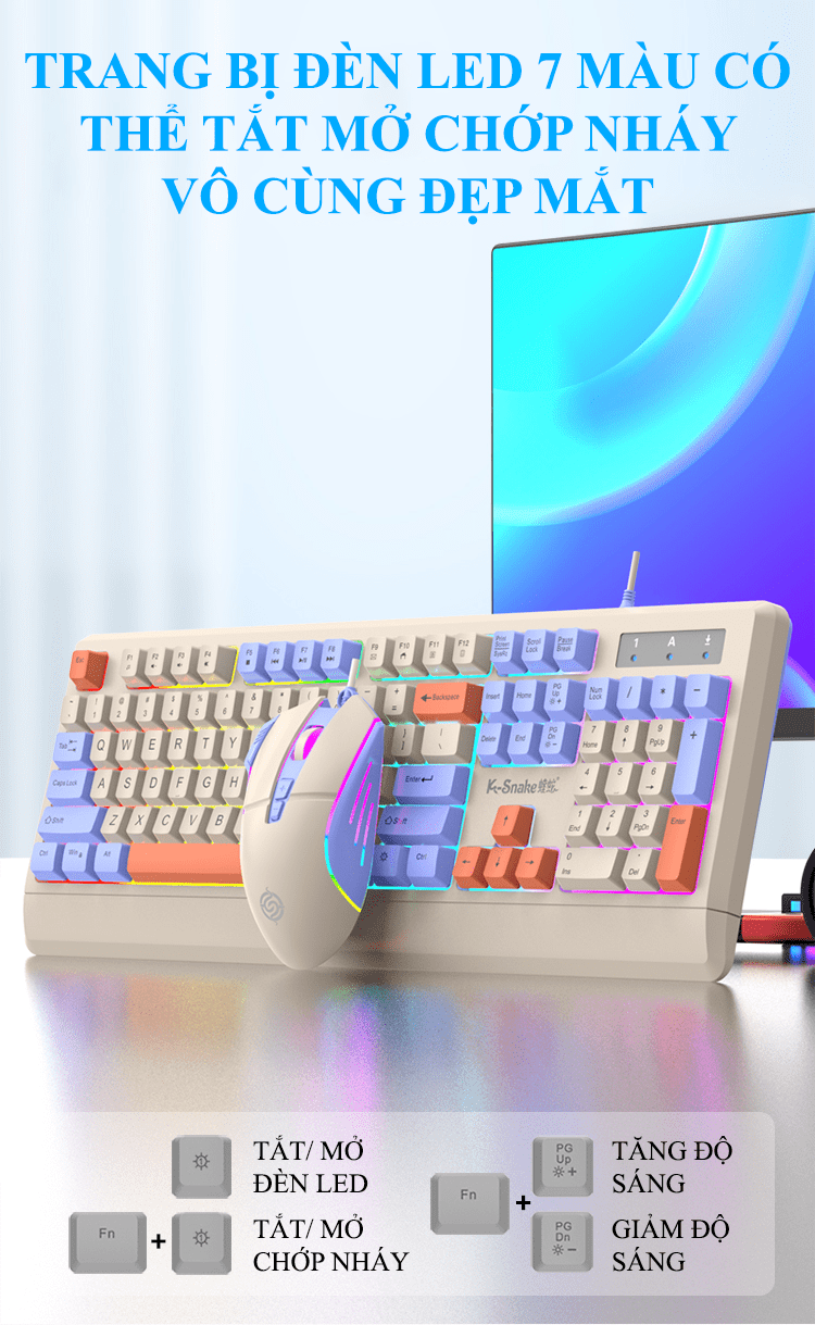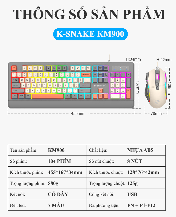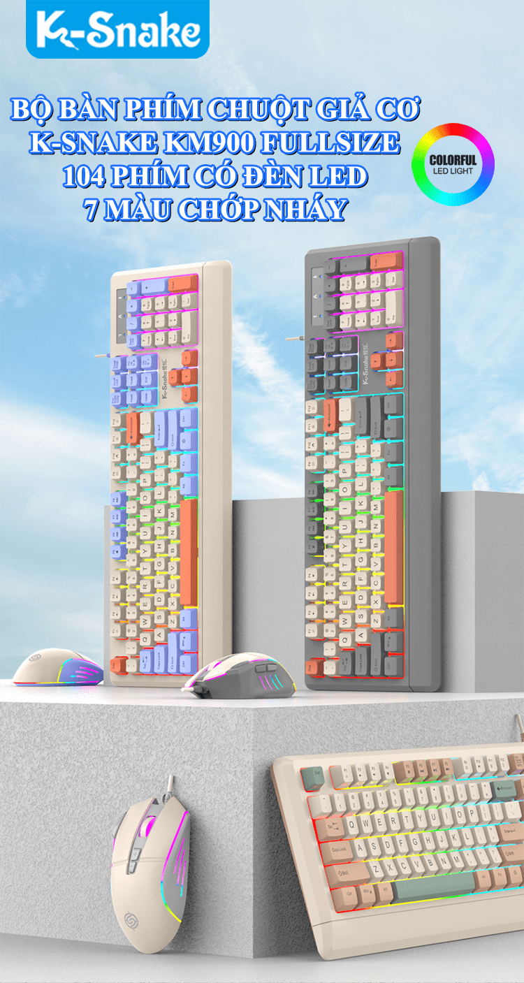 Bộ bàn phím và chuột có dây chuyên game K-SNAKE KM900 fullsize 104 phím giả cơ có đèn led 7 màu chớp nháy cực đẹp