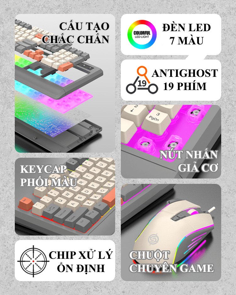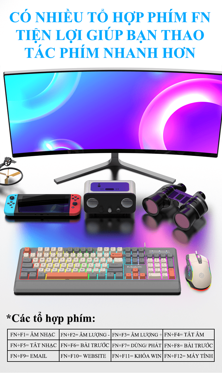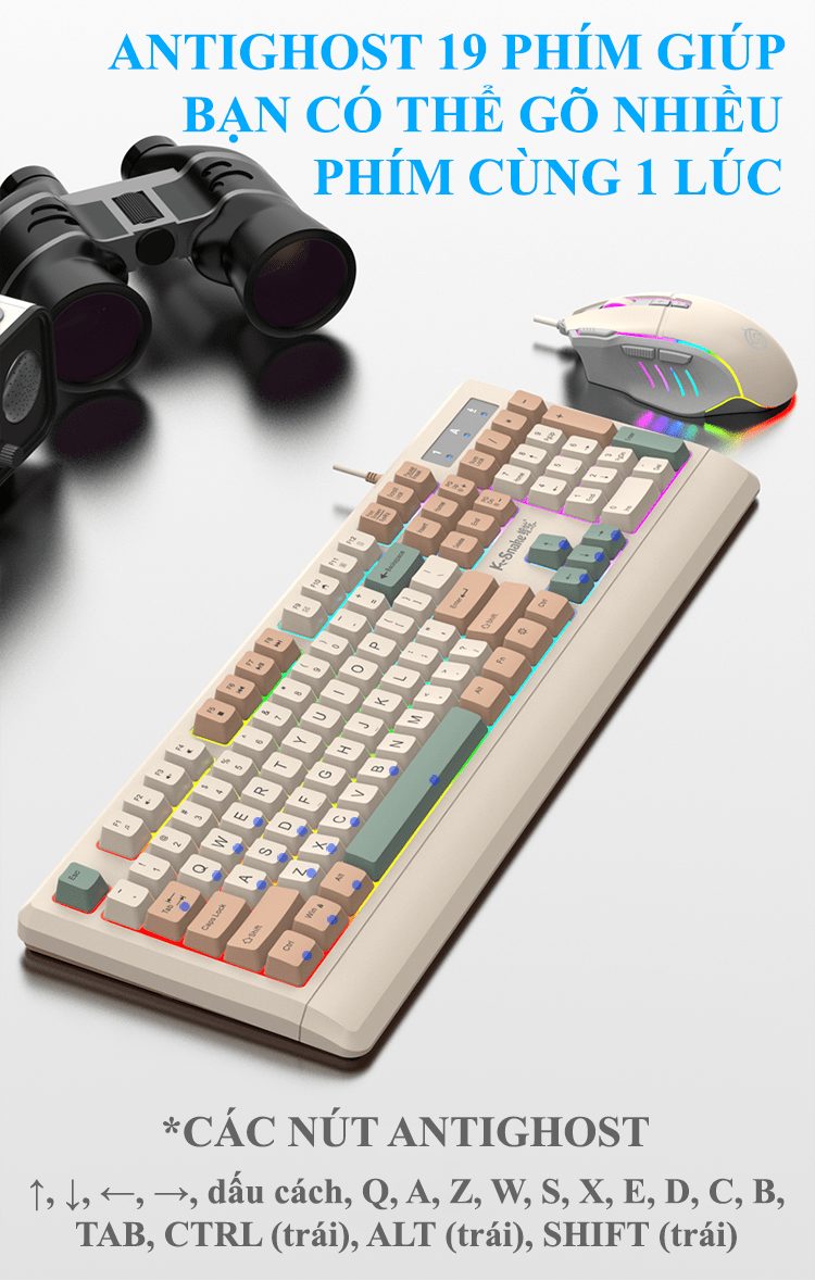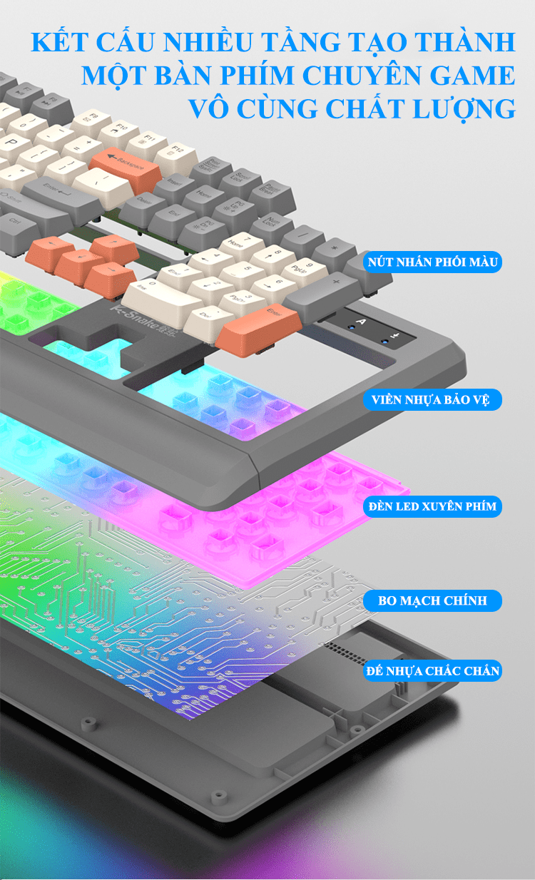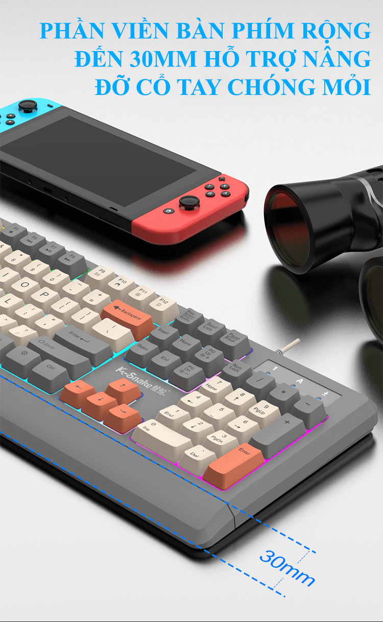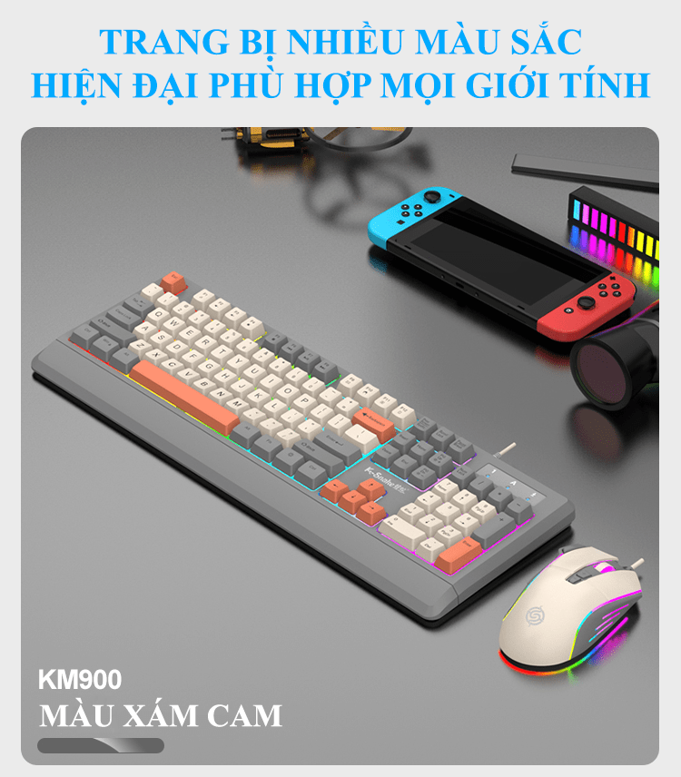 Bộ bàn phím và chuột có dây chuyên game K-SNAKE KM900 fullsize 104 phím giả cơ có đèn led 7 màu chớp nháy cực đẹp