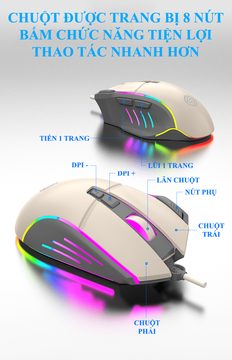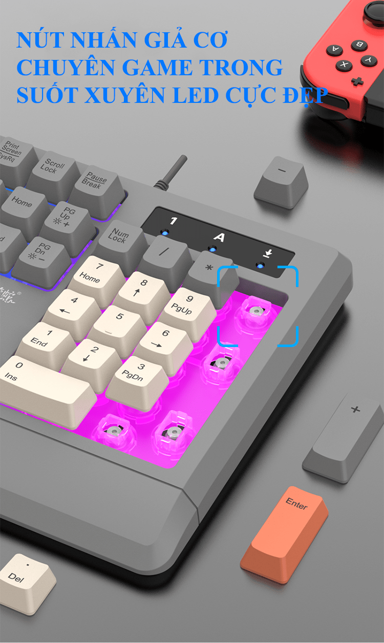Đèn led nền và led phím với 7 màu và tắt mở, chớp nháy.