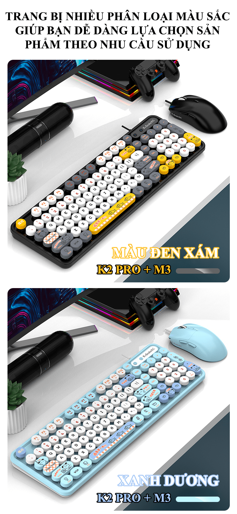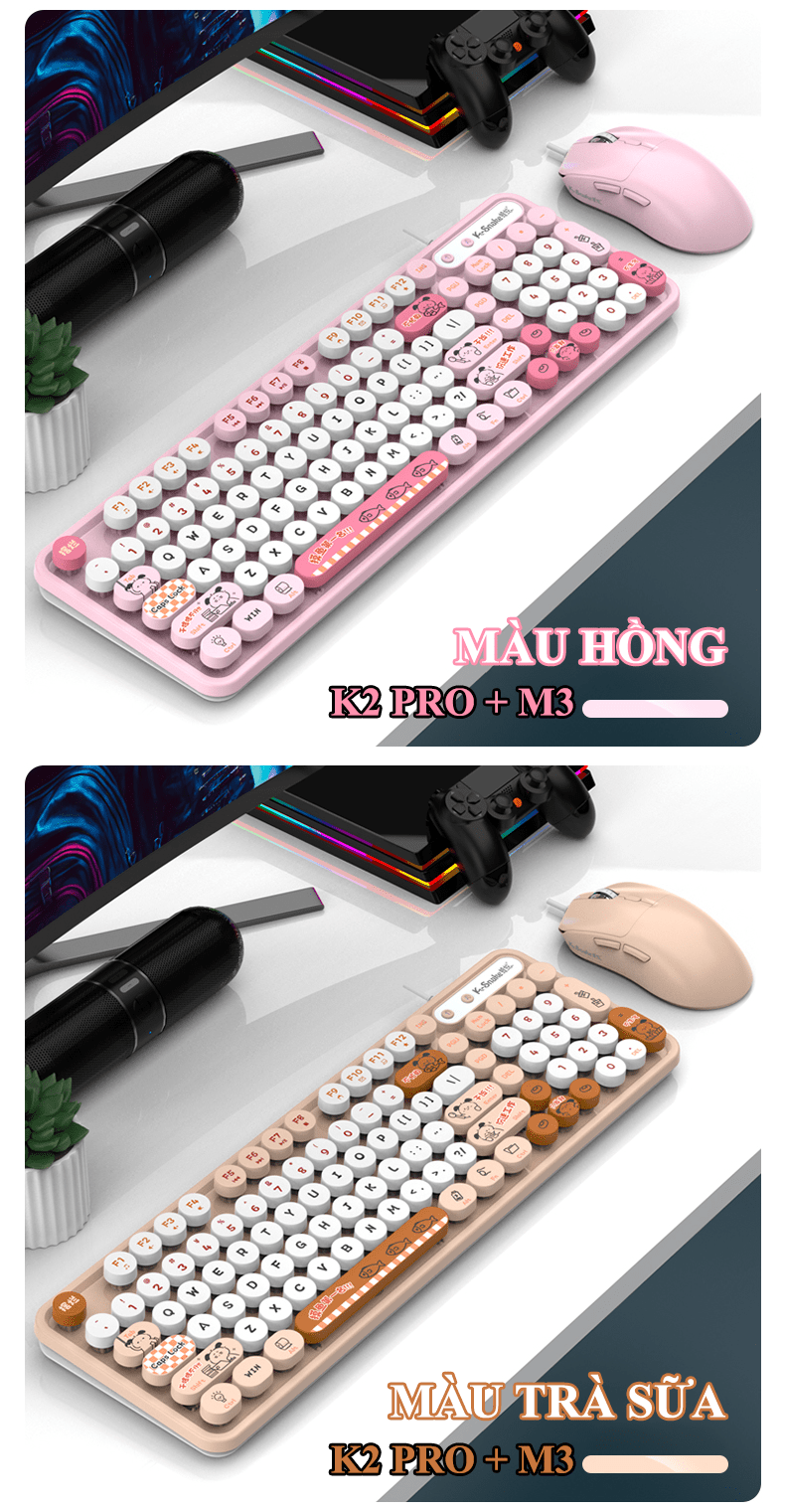 Bộ bàn phím và chuột có dây K-SNAKE K2 PRO + M3 với thiết kế họa tiết hoạt hình vô cùng dễ thương và chuột siêu nhẹ độ nhạy cao