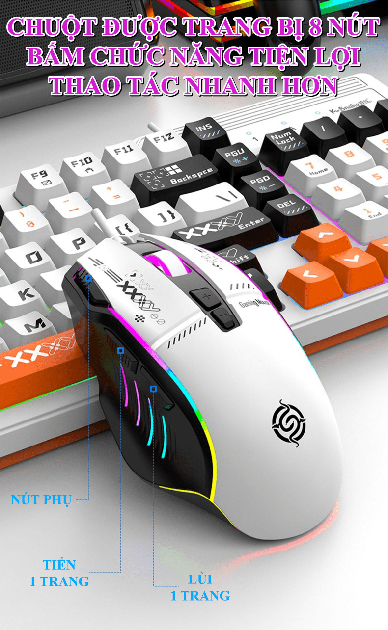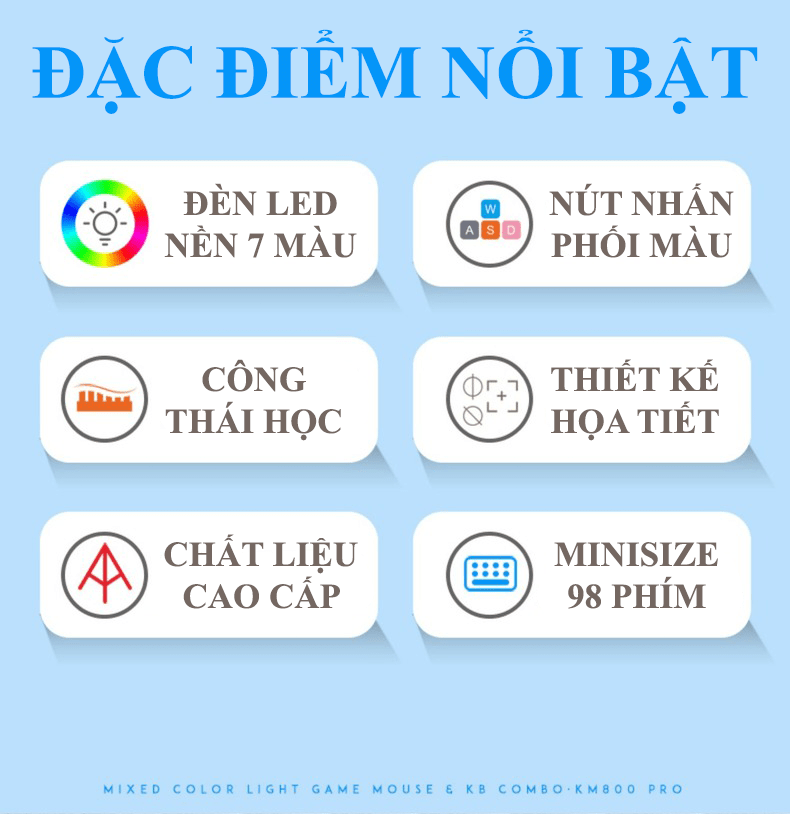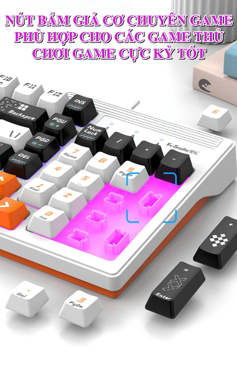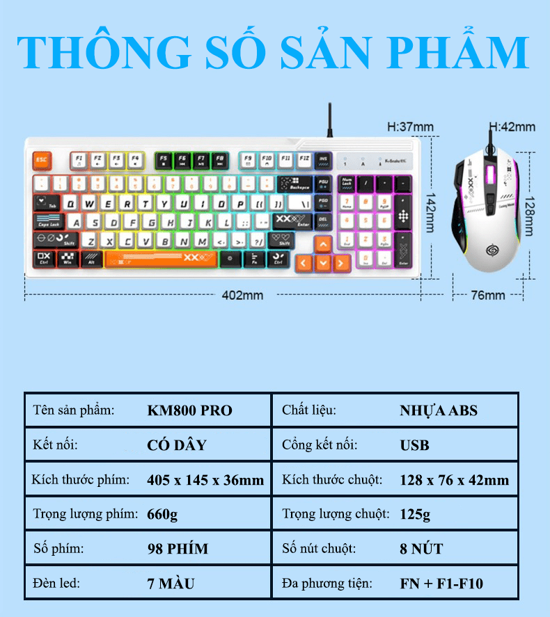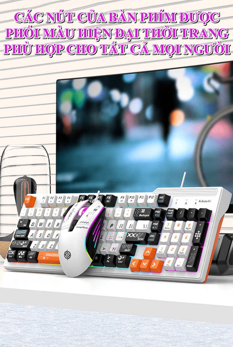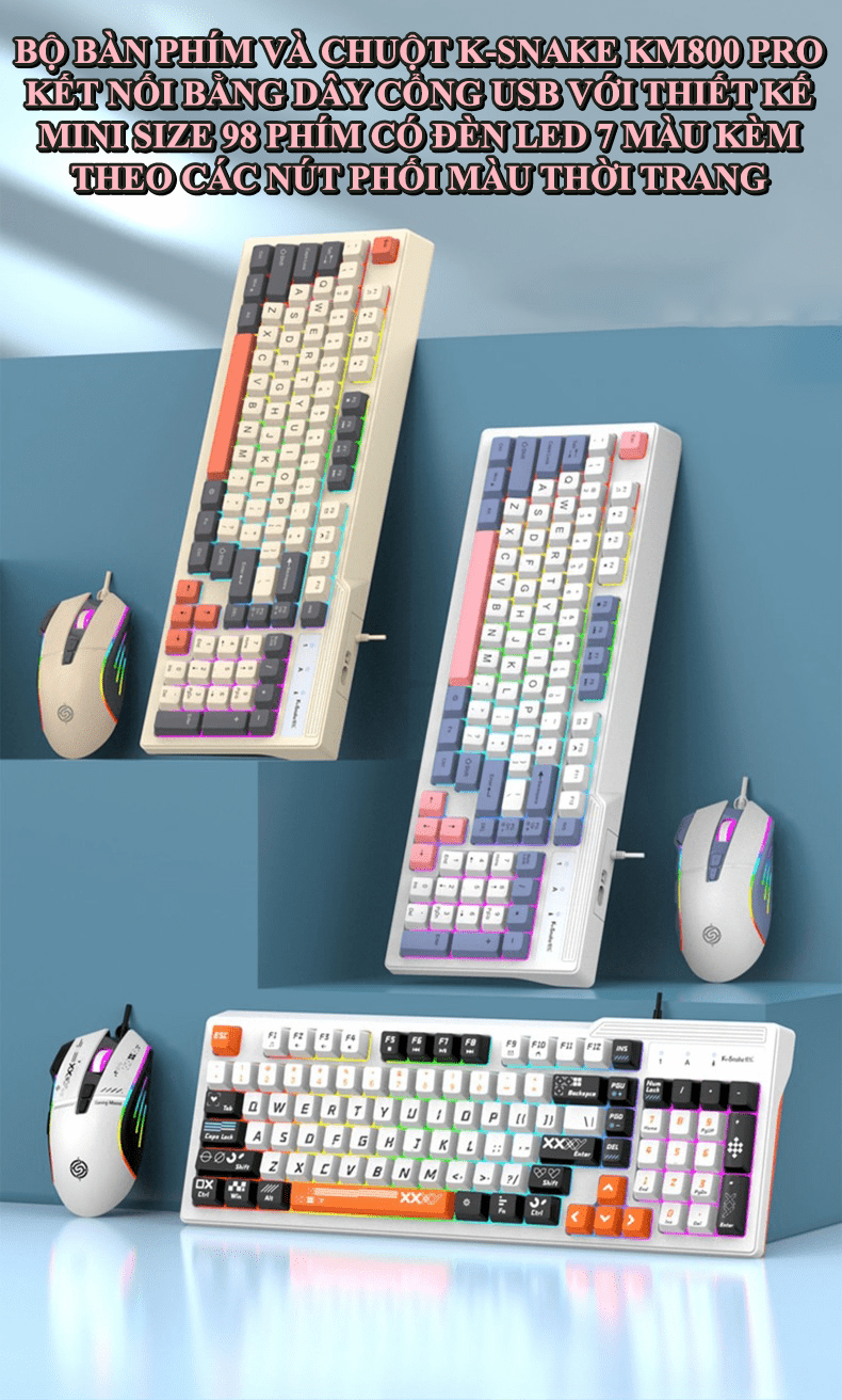 Bộ bàn phím và chuột có dây K-SNAKE KM800 PRO ROBOT thiết kế mini size 98 phím có đèn led 7 màu kèm theo họa tiết ROBOT vô cùng độc đáo