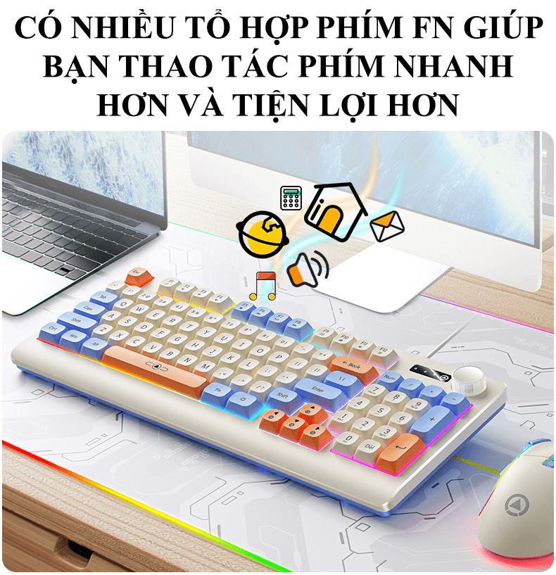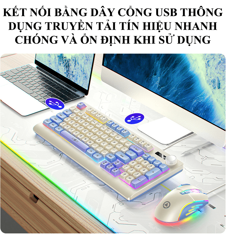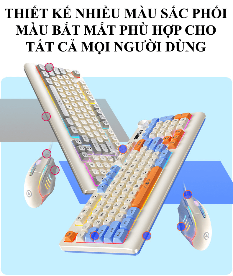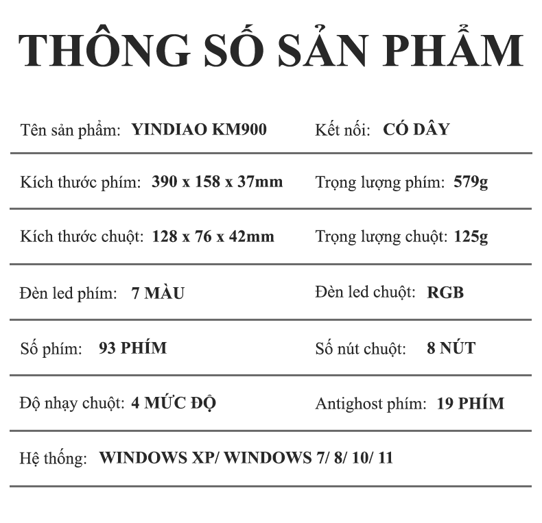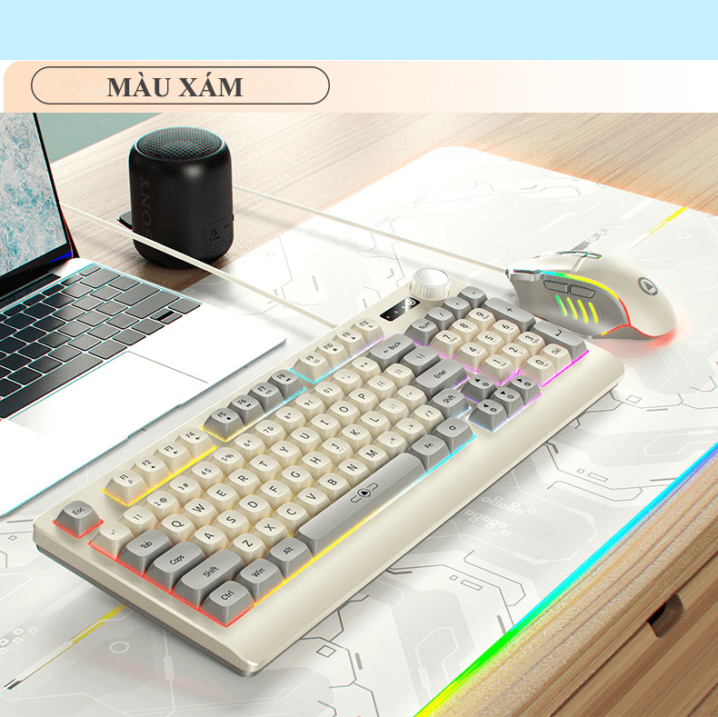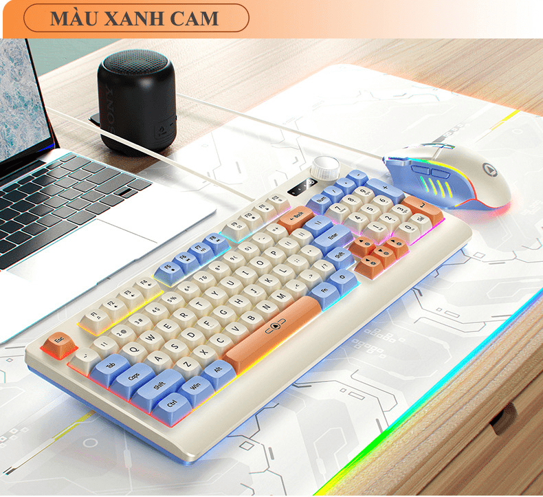 Bộ bàn phím và chuột có dây YINDIAO KM900 thiết kế phối màu hiện đại trẻ trung kiểu dáng nhỏ gọn 93 phím kèm theo đèn led 7 màu chớp nháy dành cho game thủ