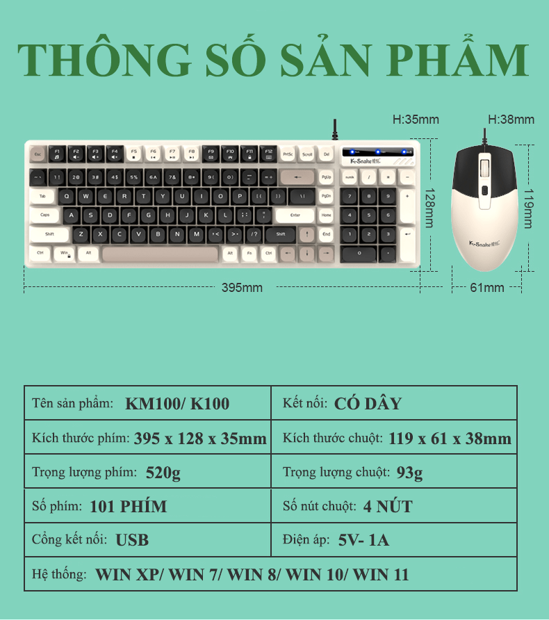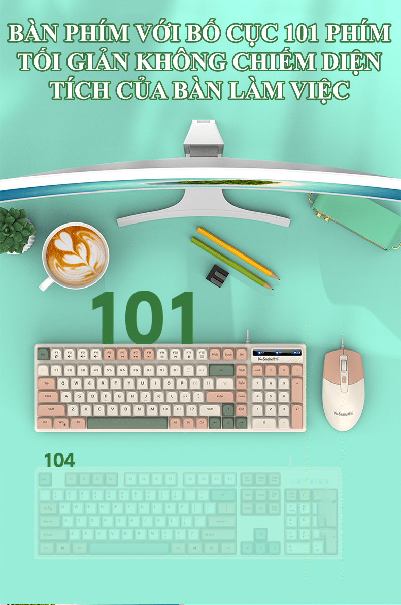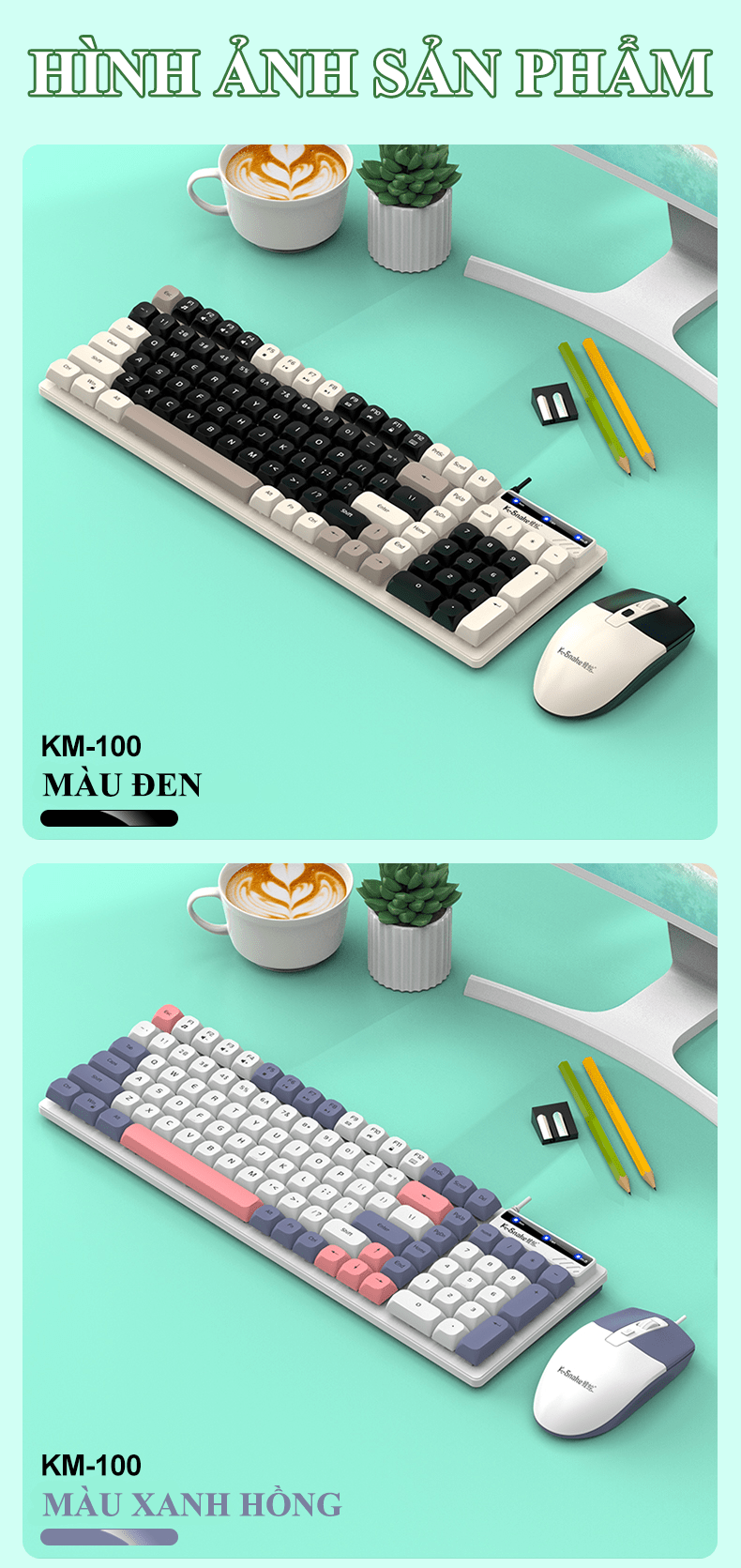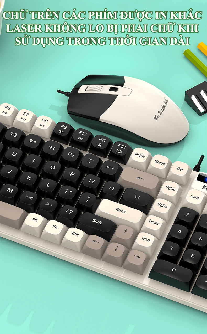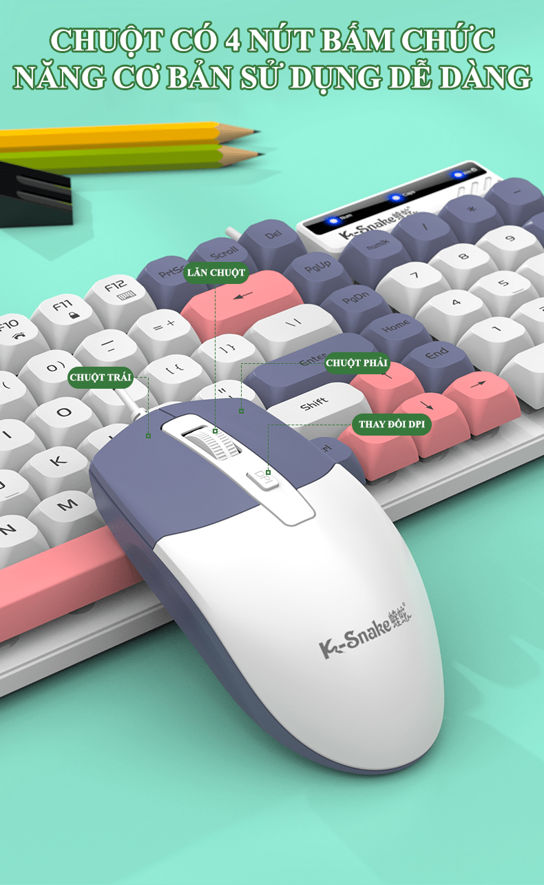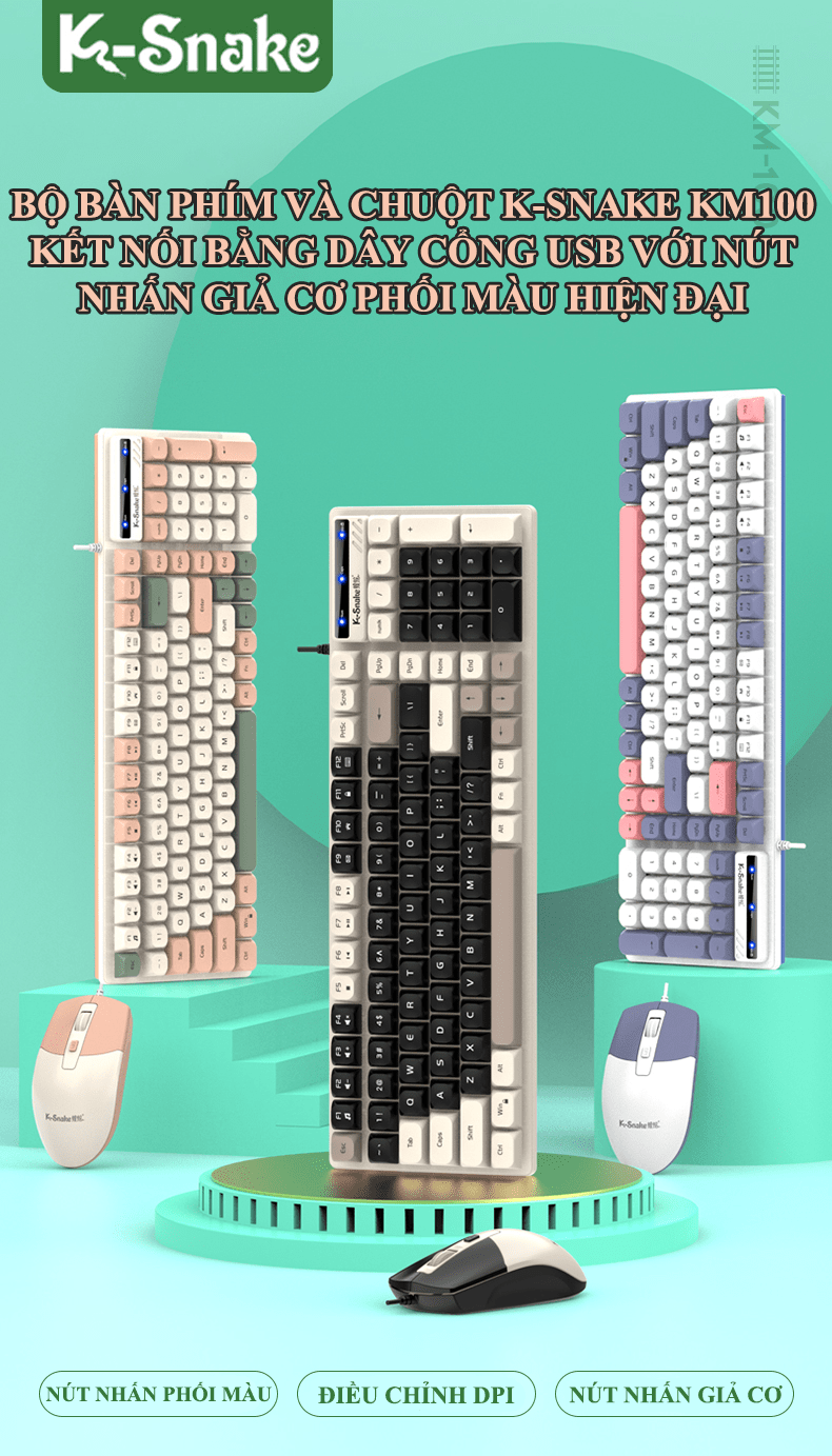Bộ bàn phím và chuột K-SNAKE KM100 kết nối bằng dây cổng USB thiết kế bố cục 101 nút giả cơ phối màu hiện đại