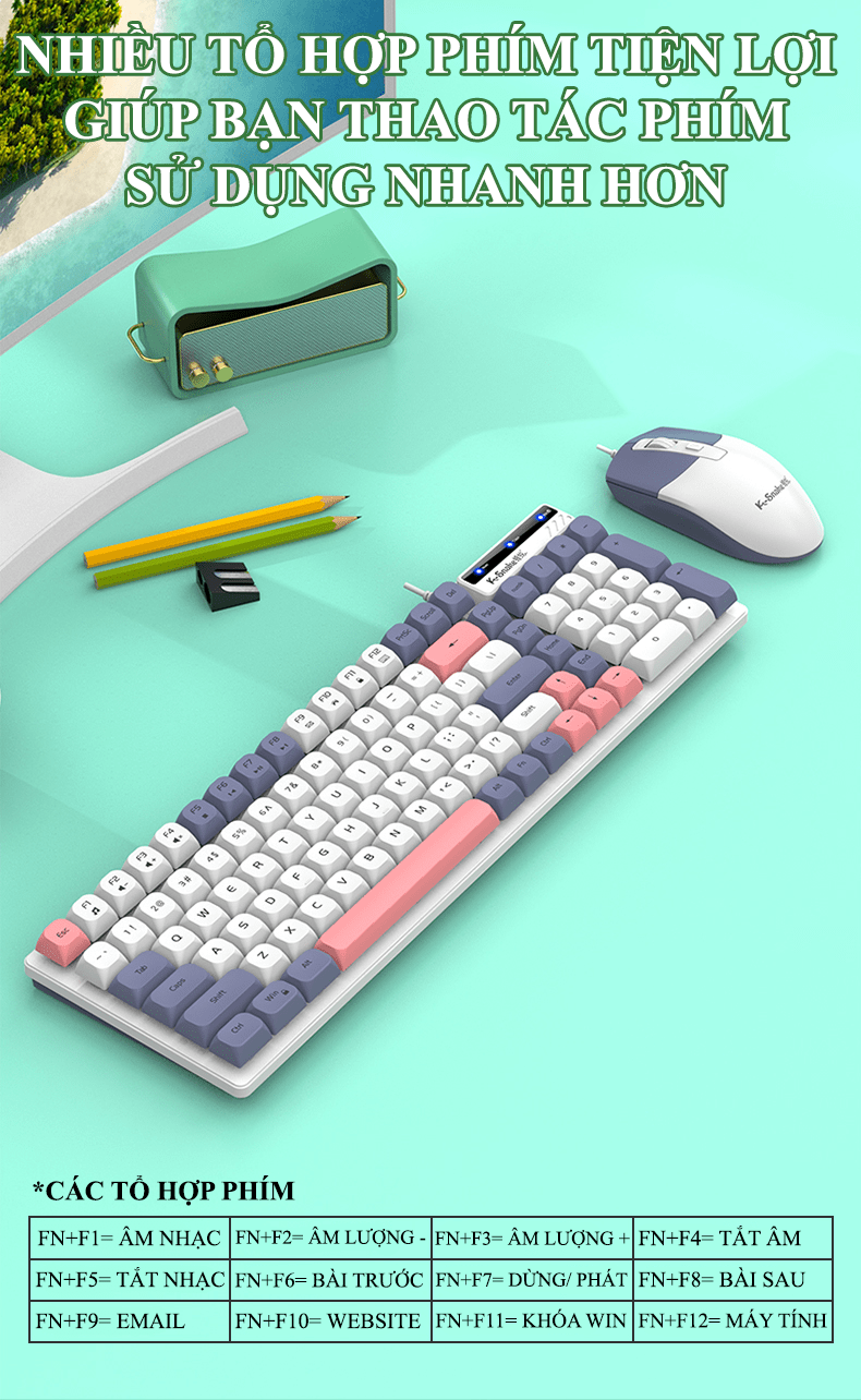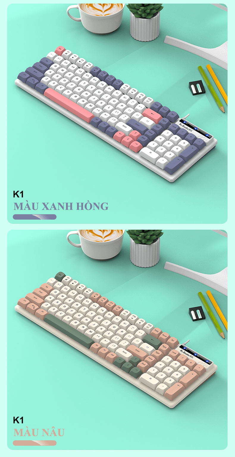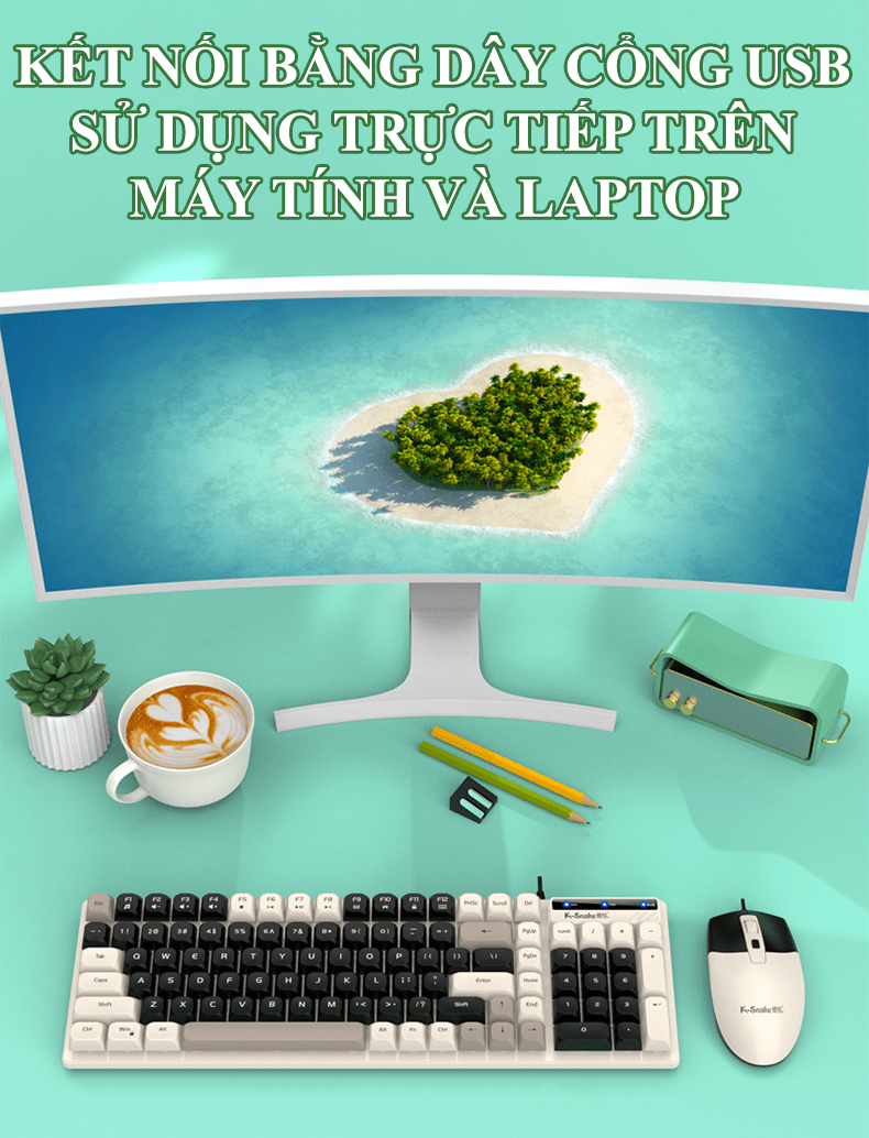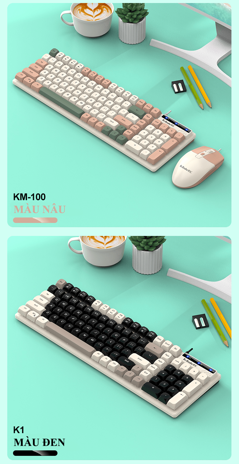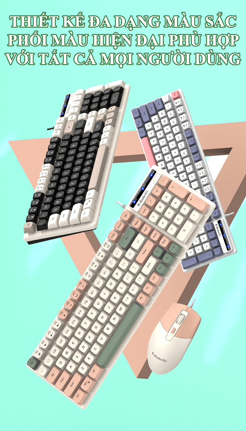 Bộ bàn phím và chuột K-SNAKE KM100 kết nối bằng dây cổng USB thiết kế bố cục 101 nút giả cơ phối màu hiện đại