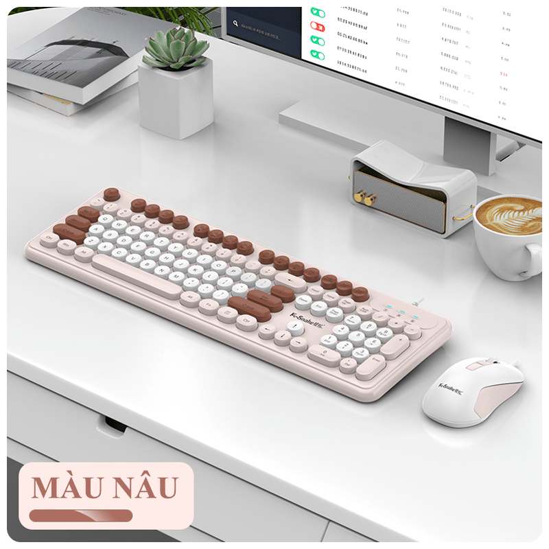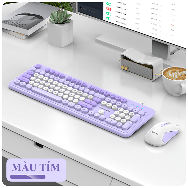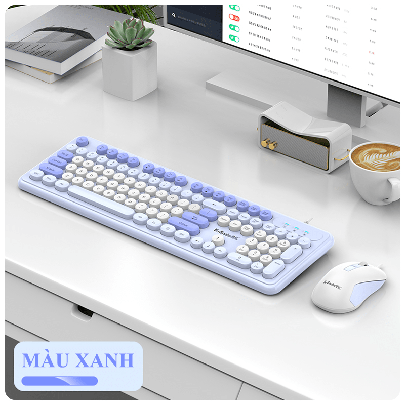 Bộ bàn phím và chuột K-SNAKE KM200 kết nối bằng dây cổng USB thiết kế nút tròn fullsize 104 phím đa dạng màu sắc