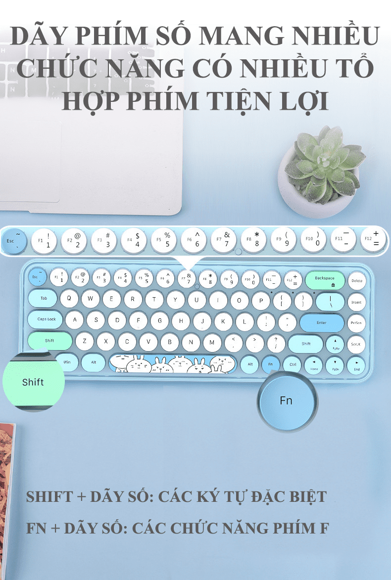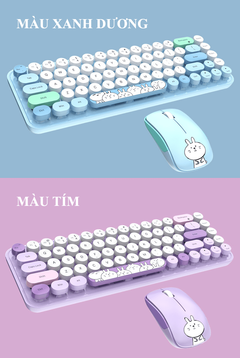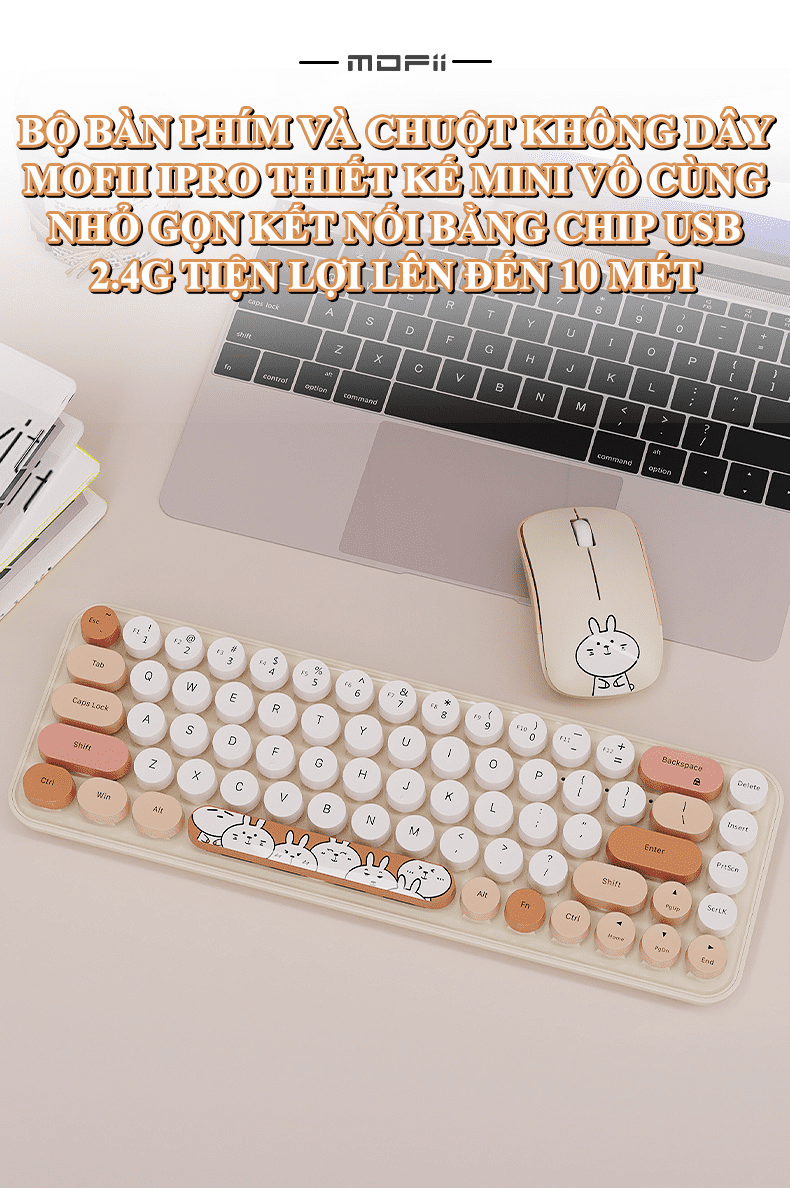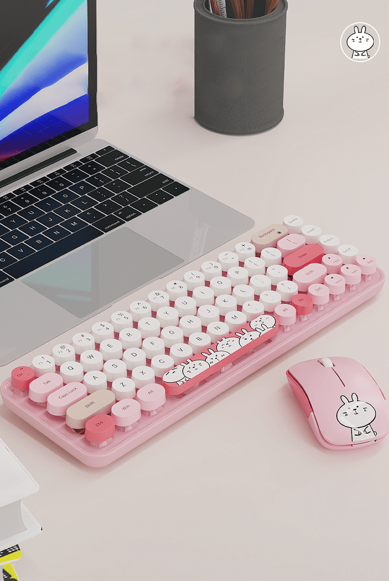 Bộ bàn phím và chuột không dây IPRO kết nối bằng USB 2.4G lên đến 10 mét với thiết kế mini nhỏ gọn họa tiết thỏ vô cùng dễ thương